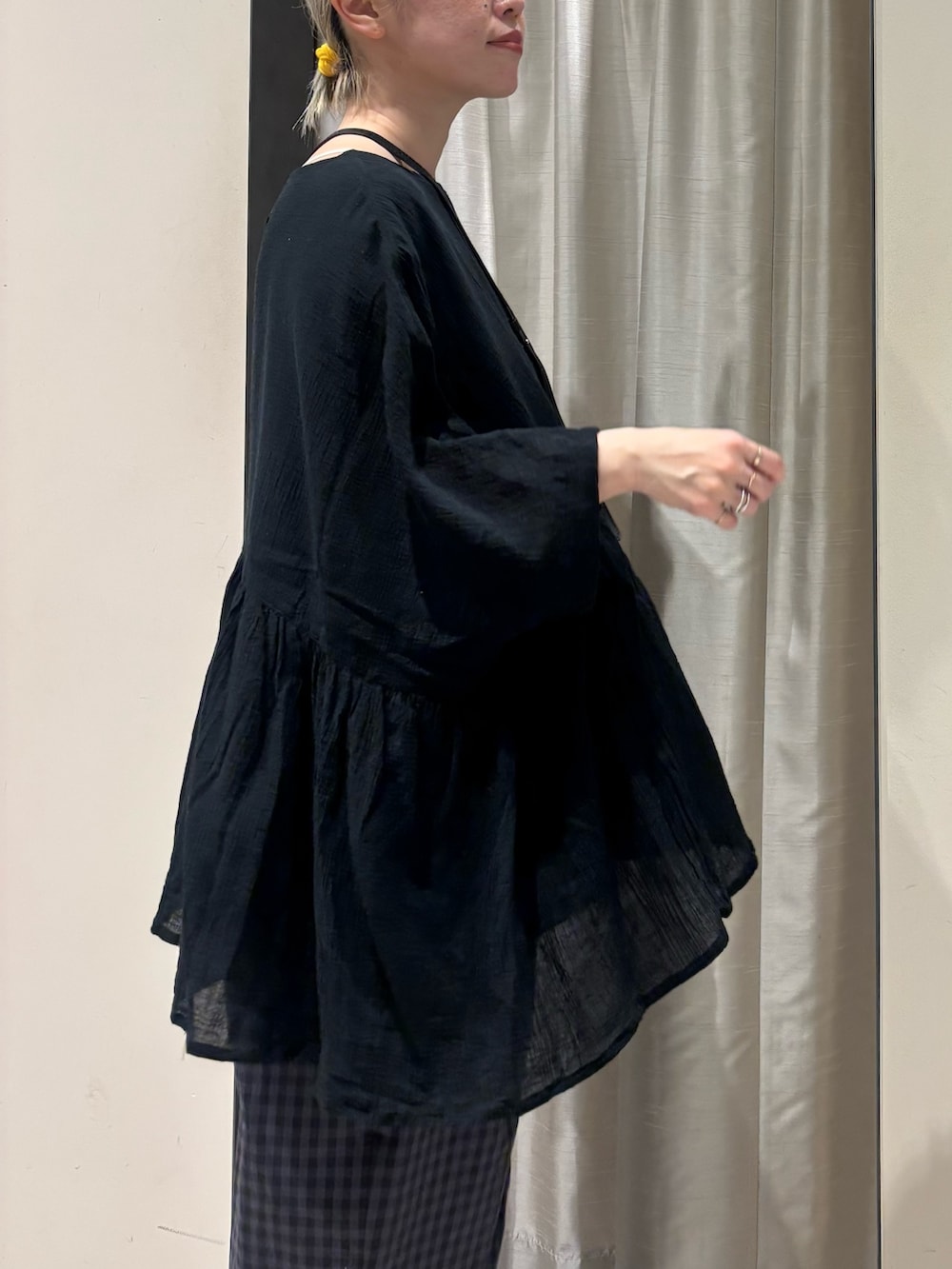 コットンクレープギャザーブラウス