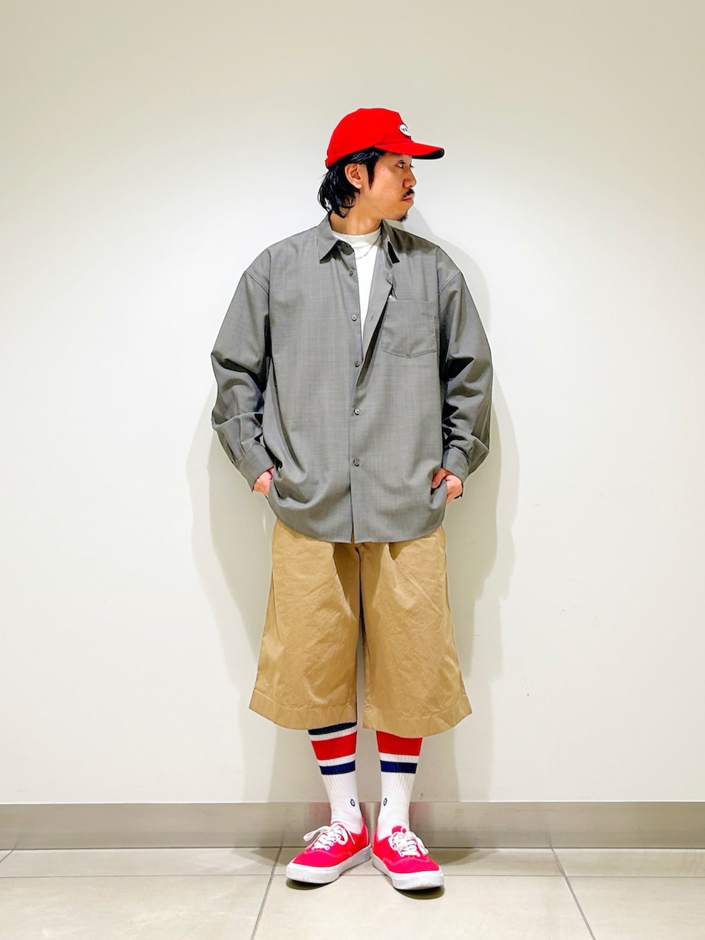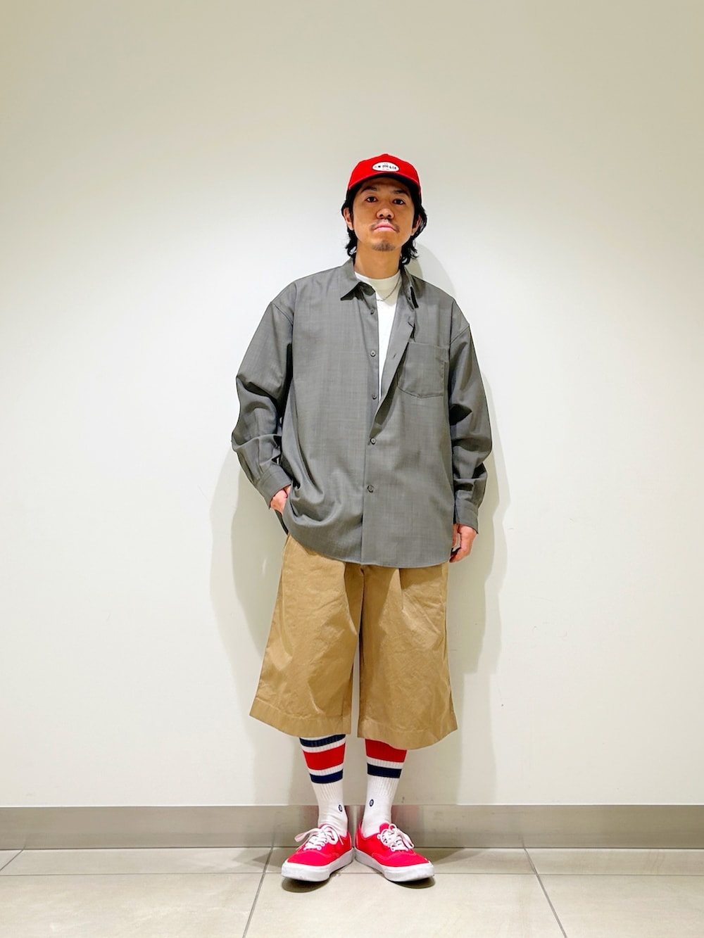 そんなストリートスタイルに、ツラのキレイなシャツを合わせ、キレイとカジュアルをミックス。