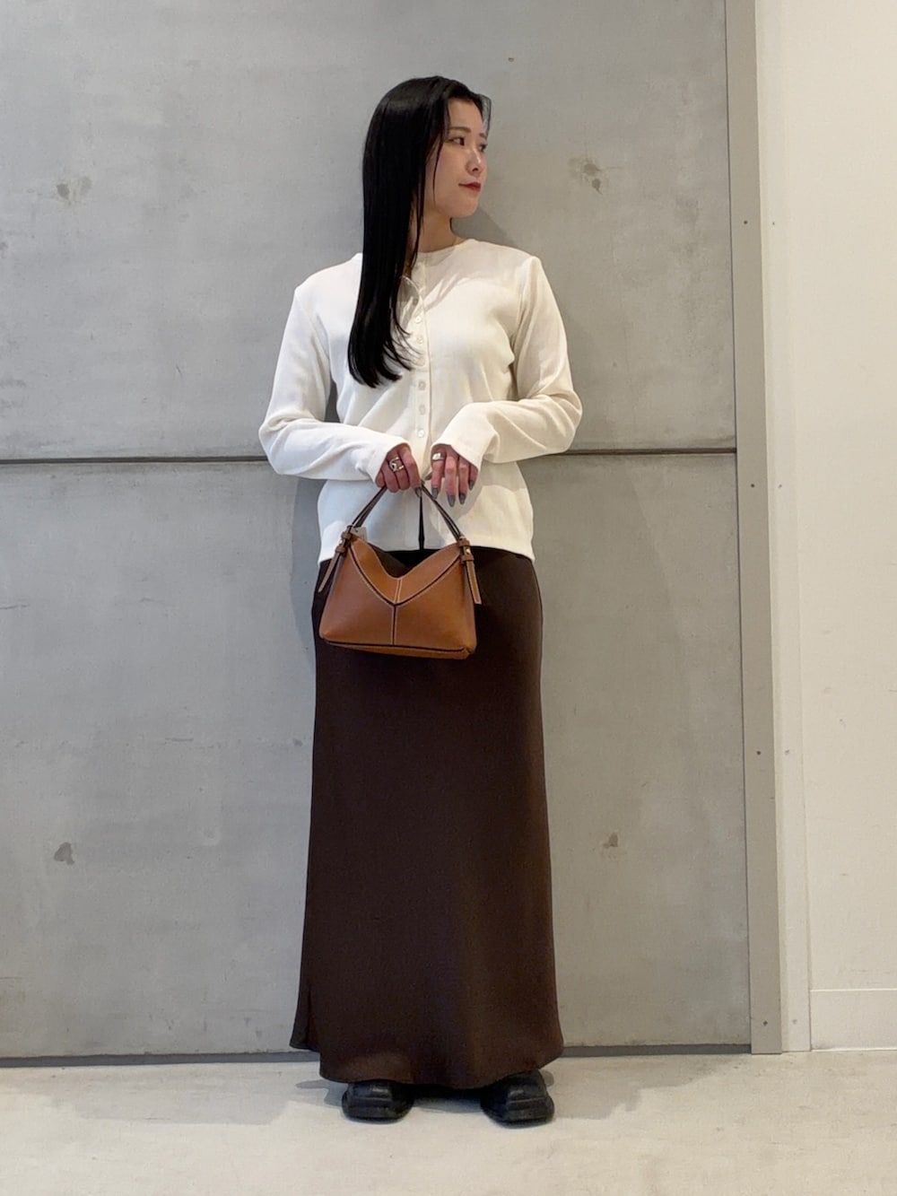 キュプラ素材のスカートと比べるとシワになりにくいので、シワが気になる方にはこちらのサテンスカートがオススメです✨