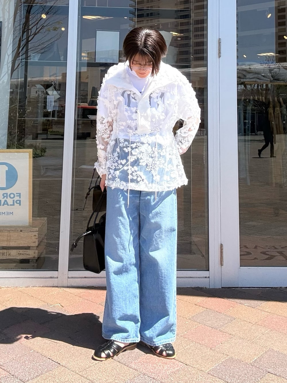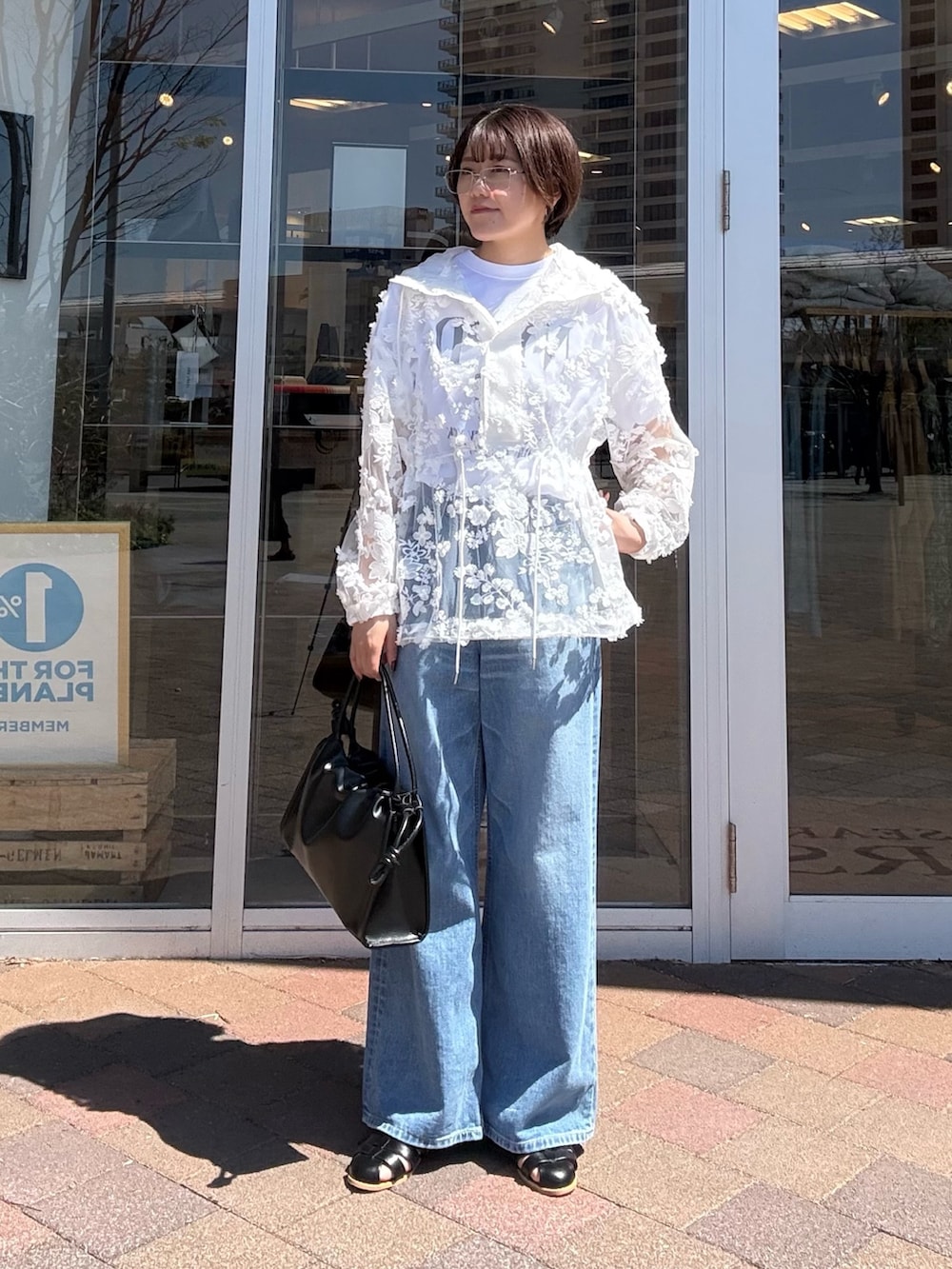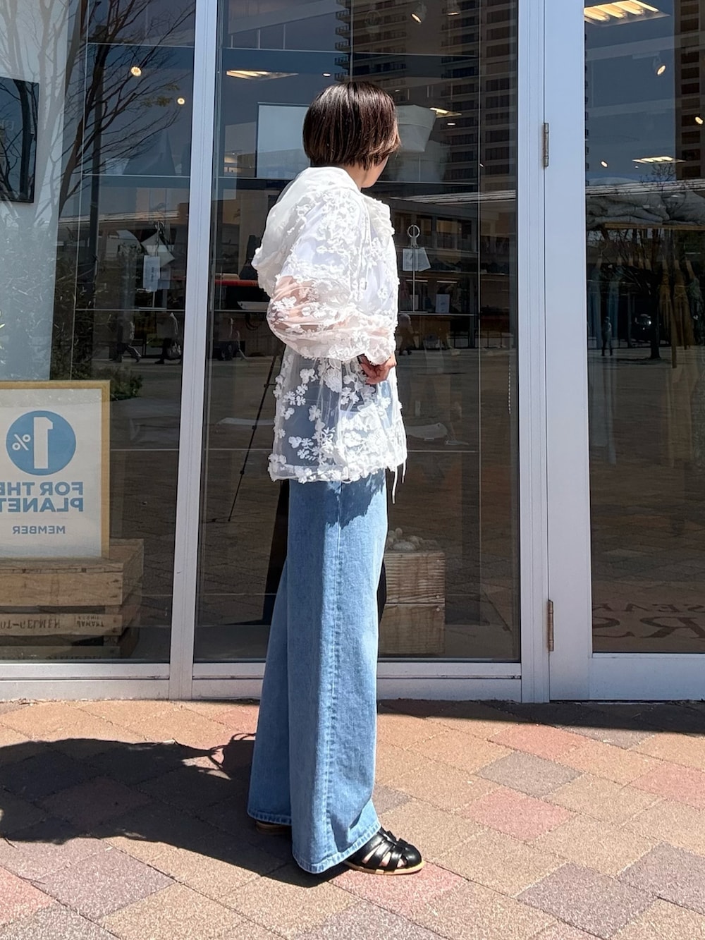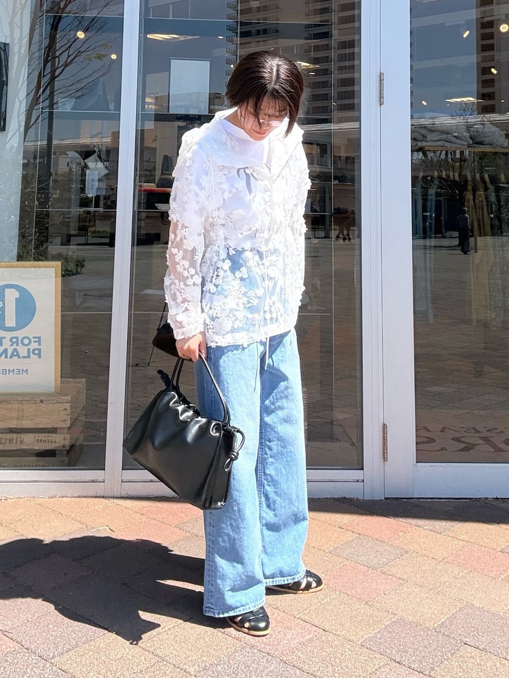 繊細なレースの透け感が、カジュアルなアイテムに女性らしさをプラスしてれます◎
