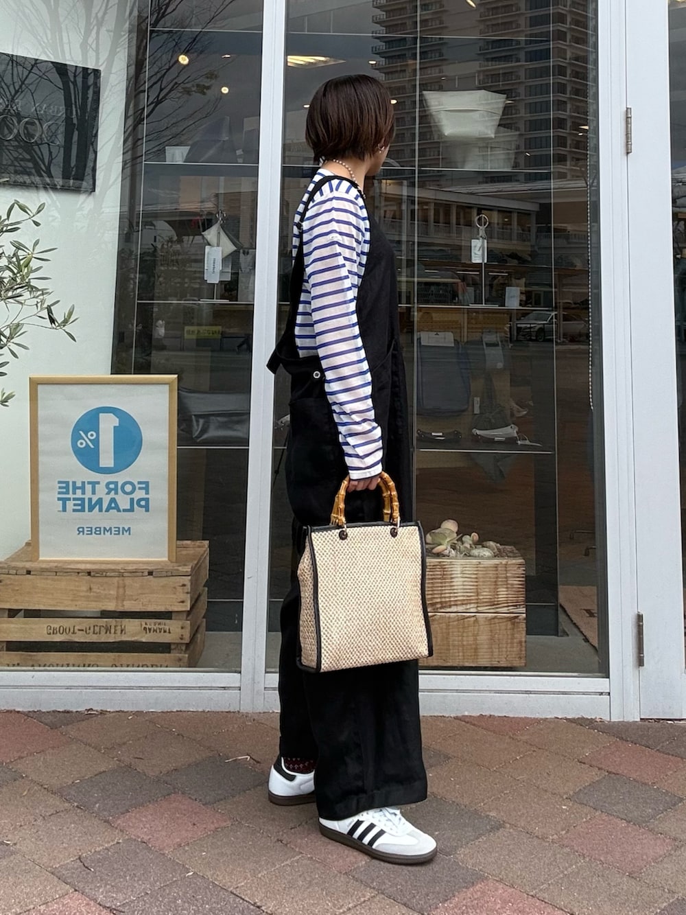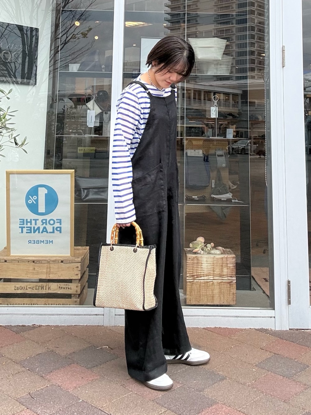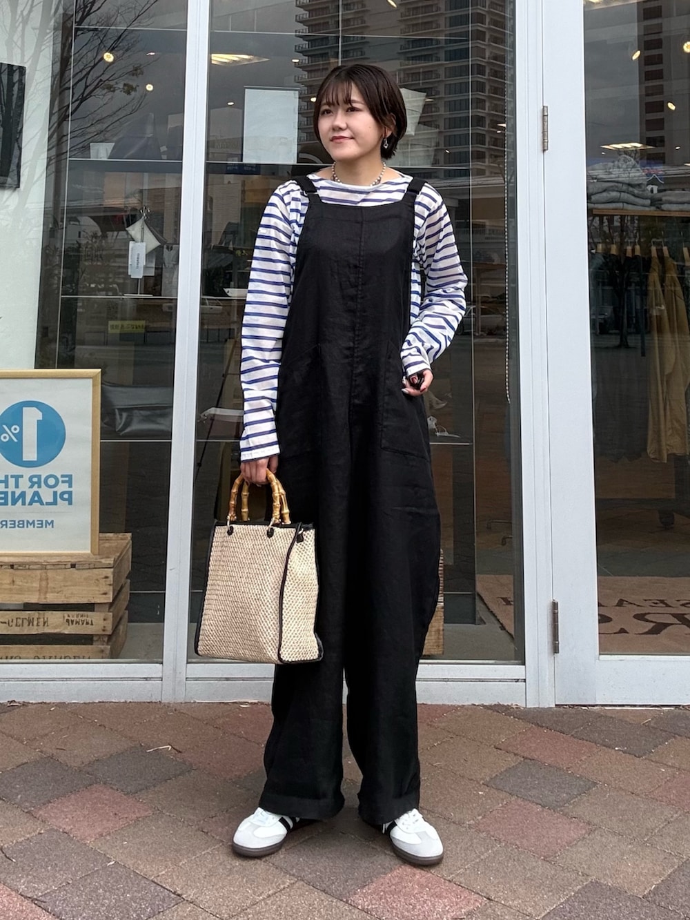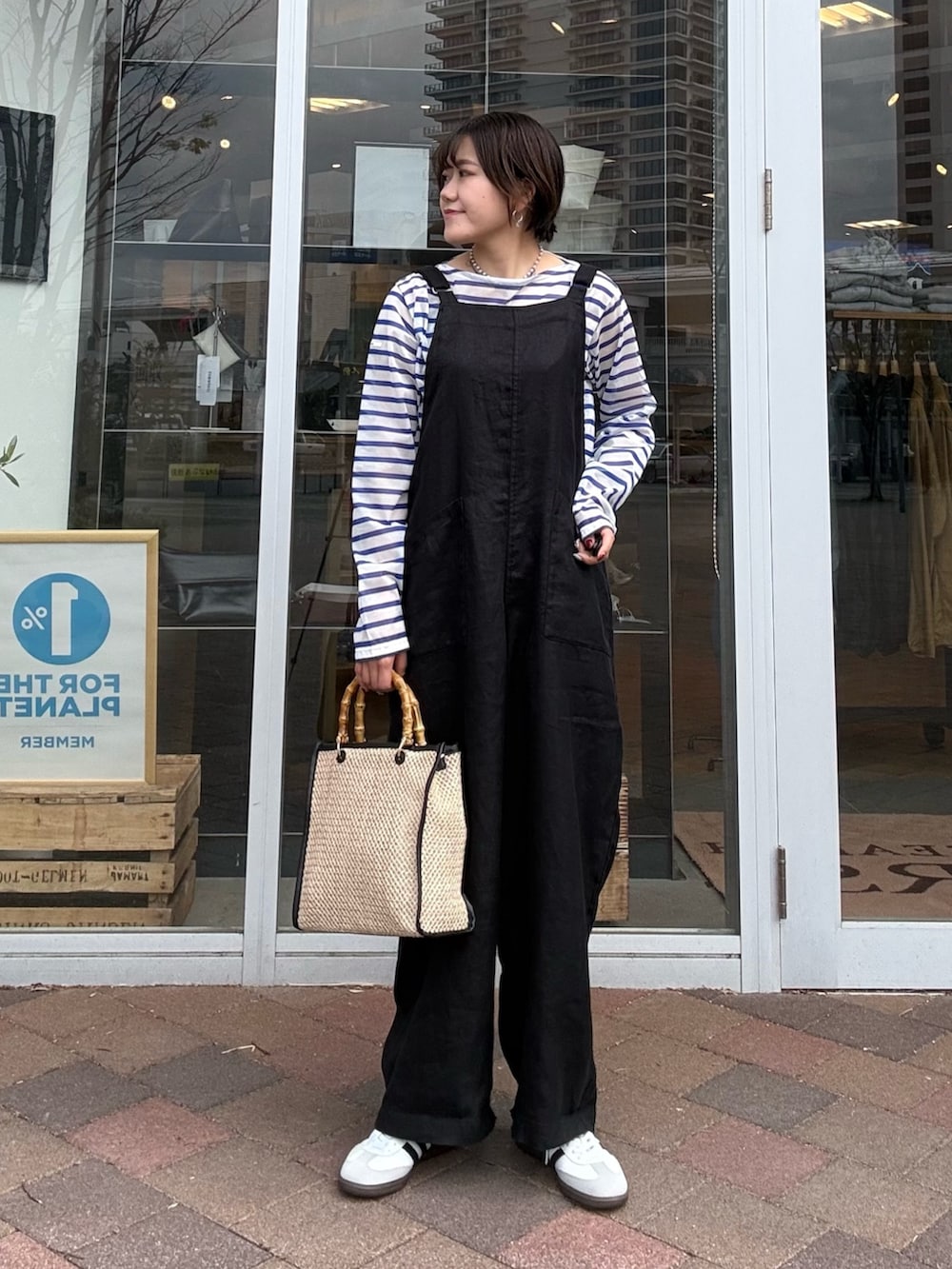 リネン素材のナチュラルな風合いで、ラフなのにどこか上品な印象に。