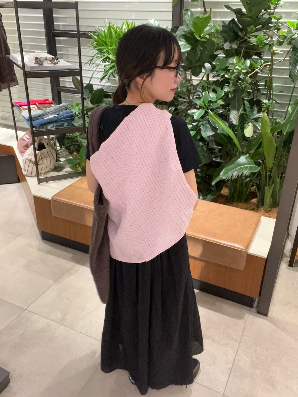 ピンクのストライフシャツを差し色に入れたものポイントで、日差し気になる方や、室内など冷えるところでは羽織りもしていただけます◎