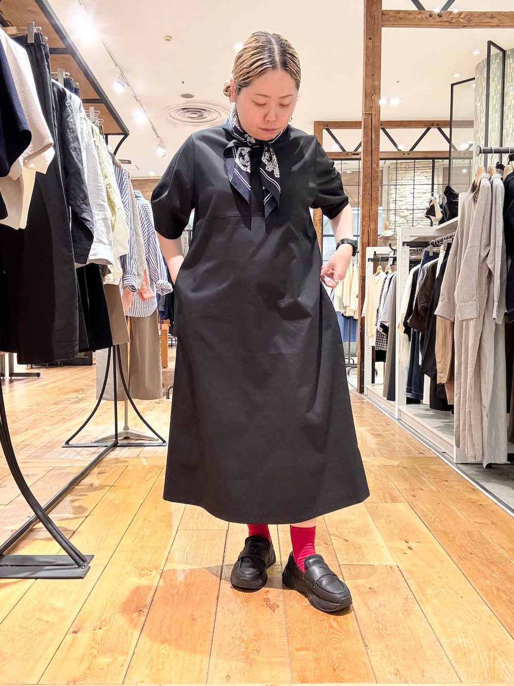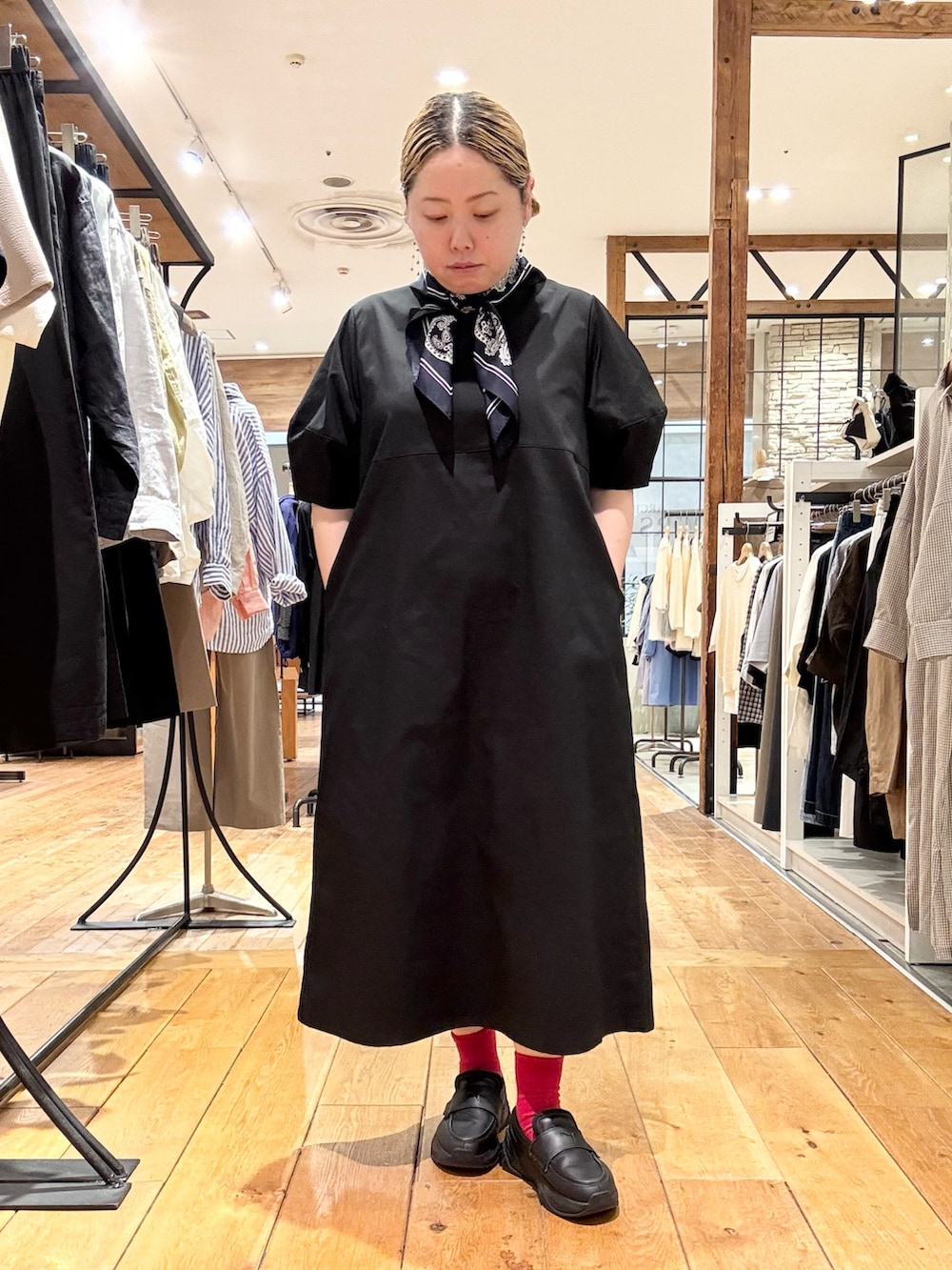 今回は首にスカーフを巻いてアクセントに👏