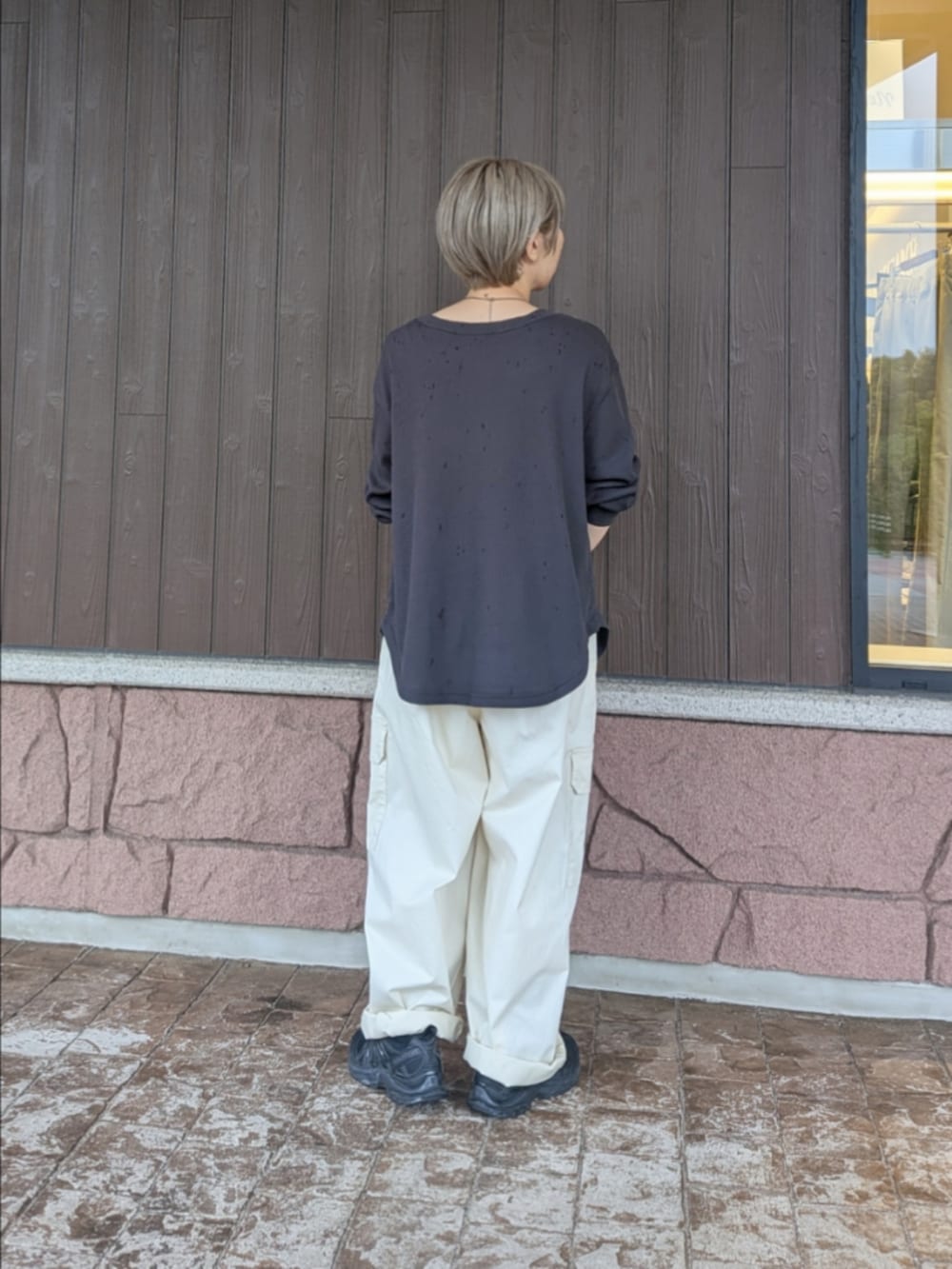 カーゴパンツパンツは今季旬なバレルパンツ。シルエットがかわいいです✨️