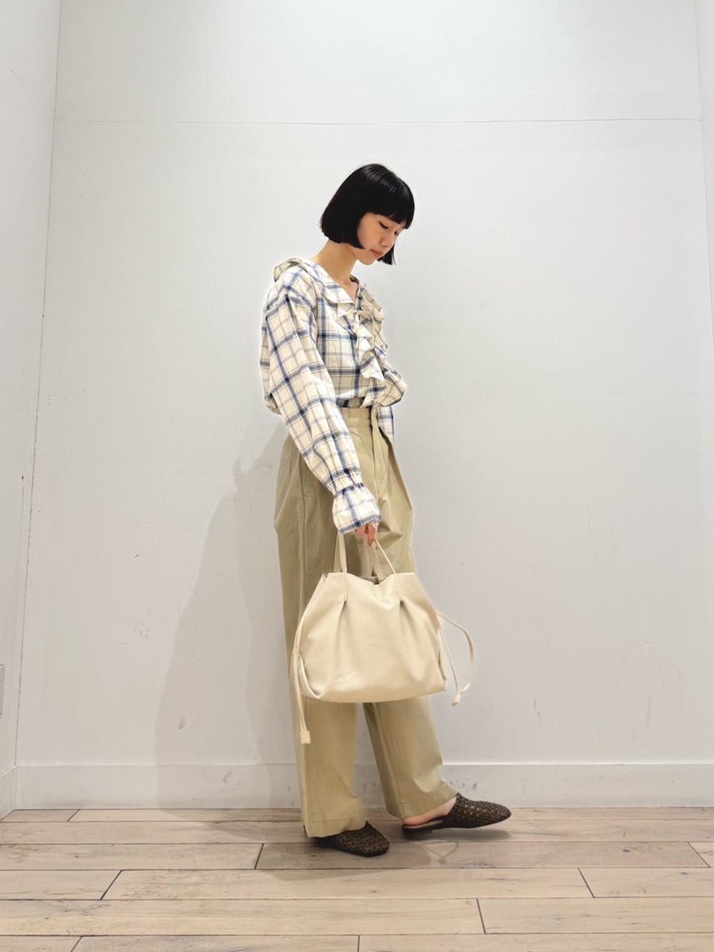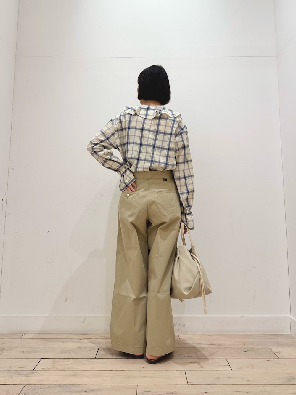 かわいらしいフリルチェックブラウスをカジュアルなLeeのパンツで合わせました☺️