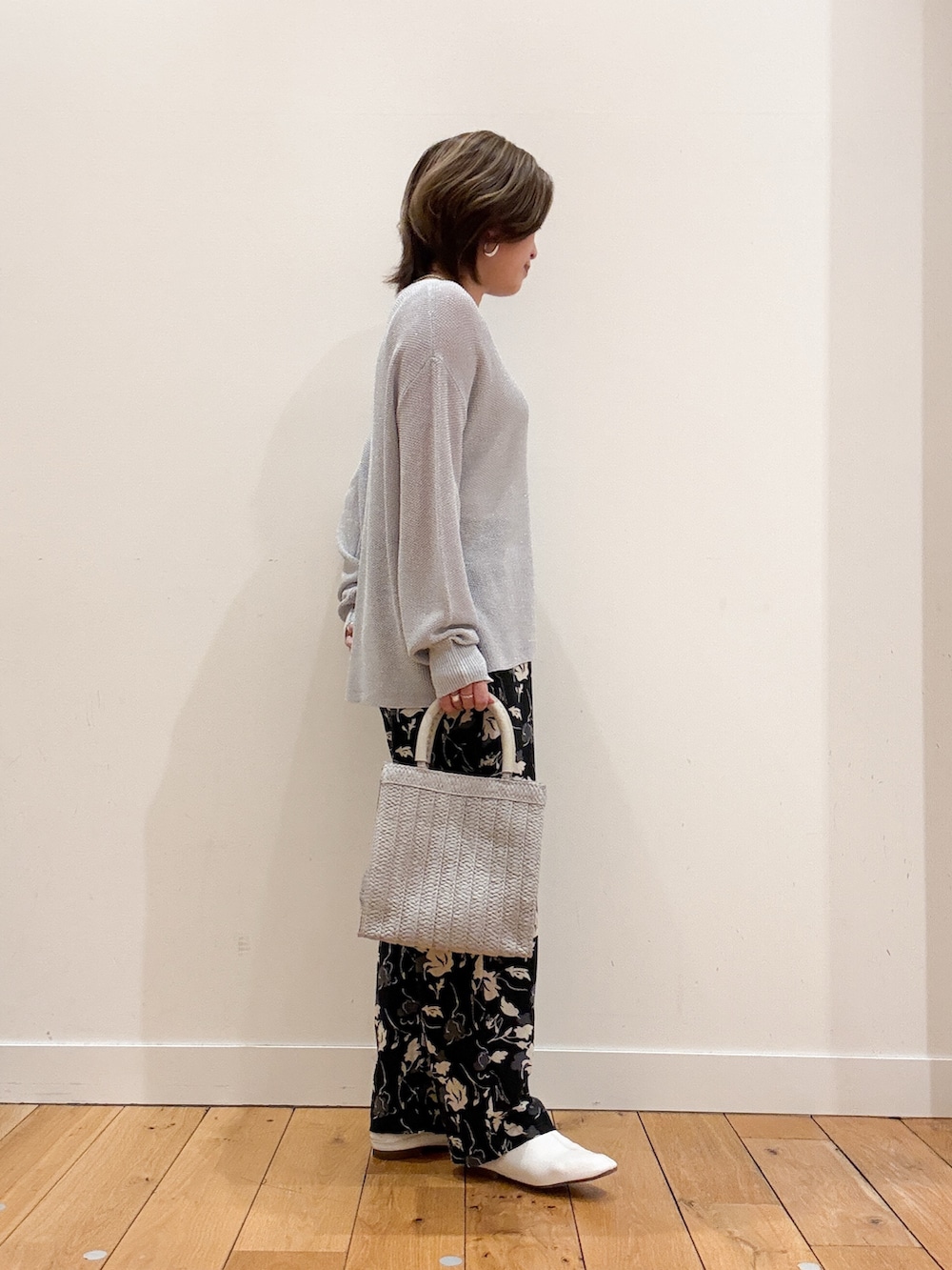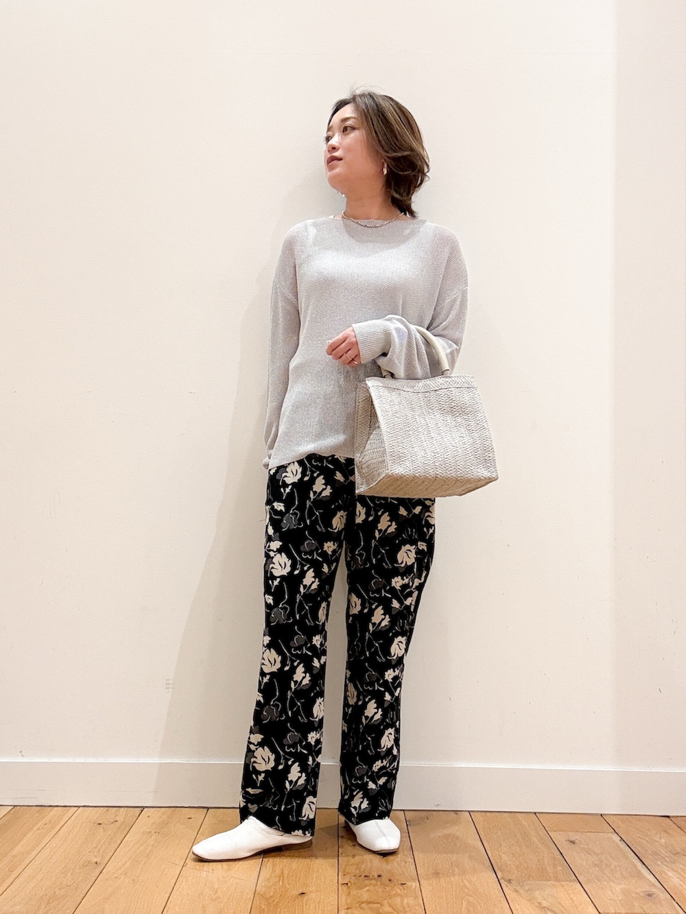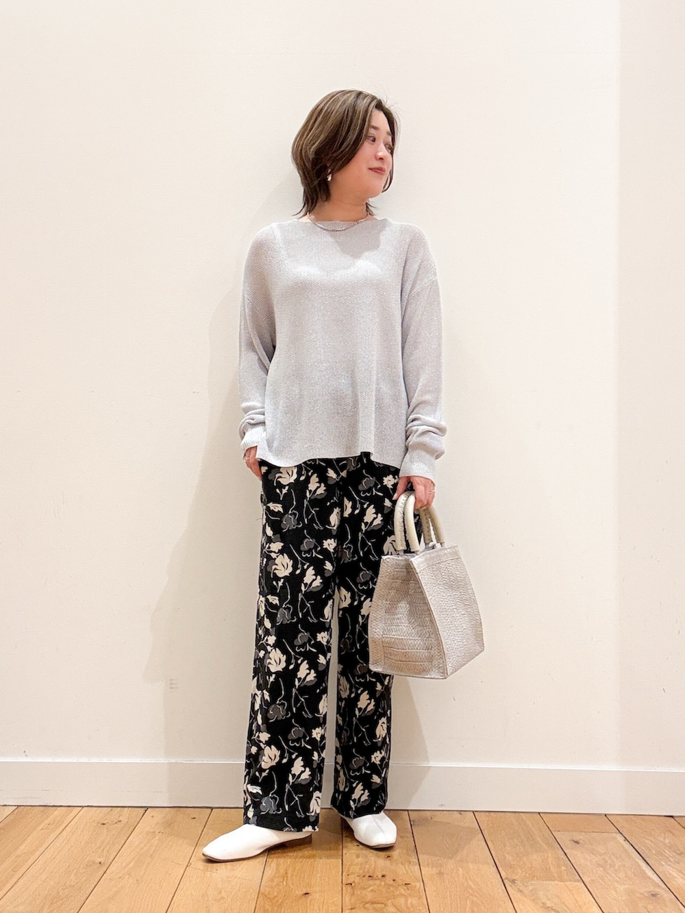 柄が新しくなったリネンリヨセルのイージーパンツを合わせました。
