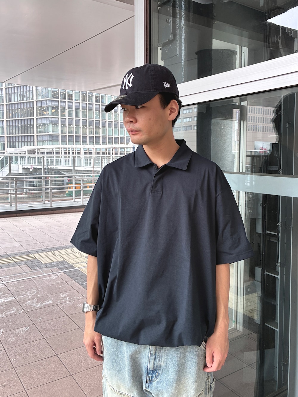 WIDE DADのポロはオーバーサイズですが裾がドローコードで絞れるので安心です!