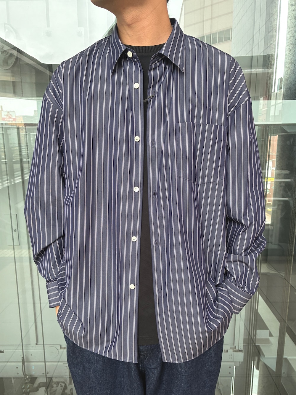 THOMAS MASONの別注シャツはサイズ感もゆったりとしていて太めのパンツとも相性が良いです!