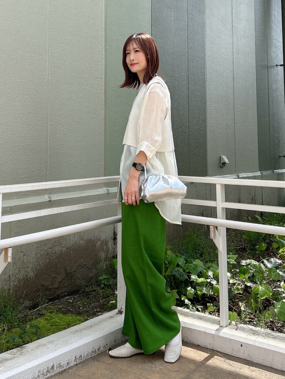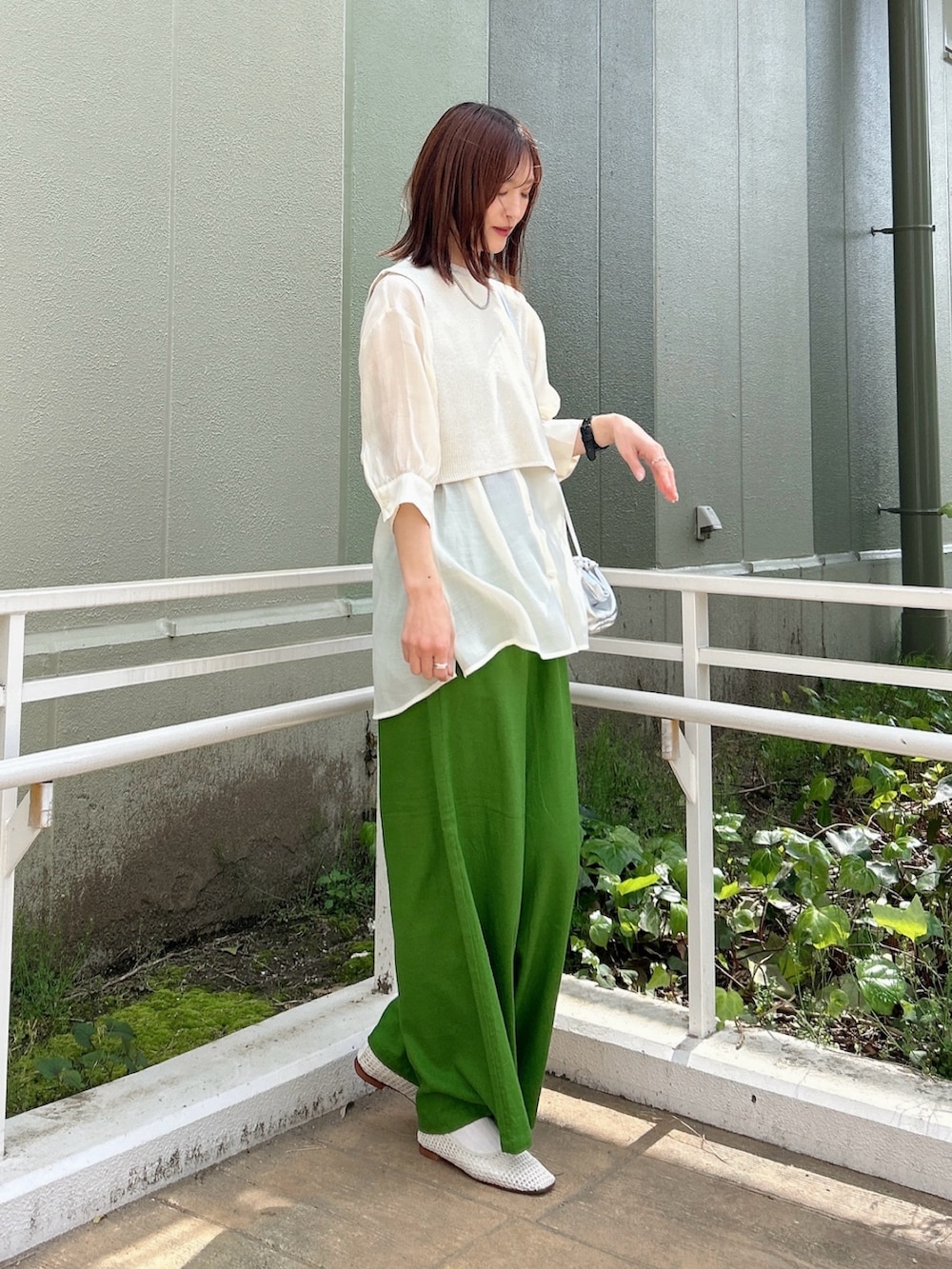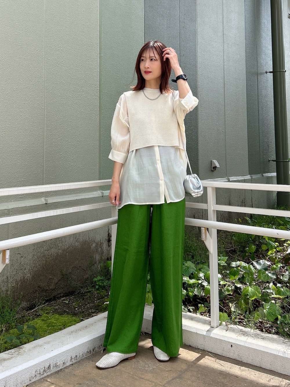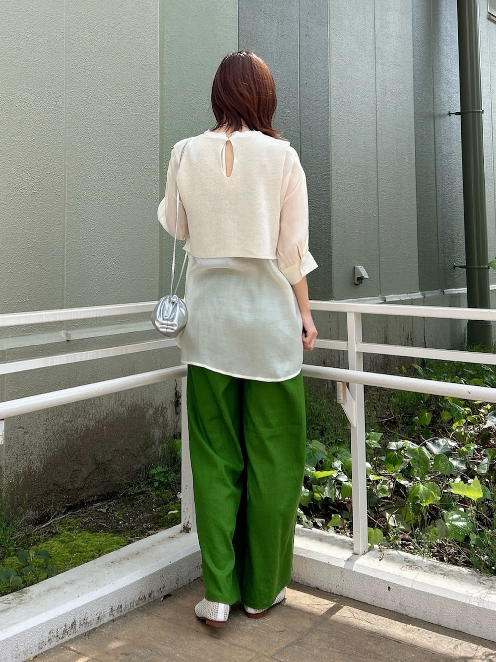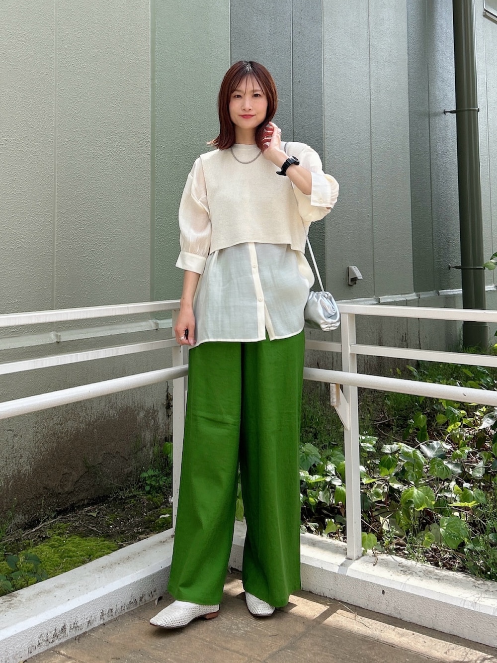 ▶︎パンツは鮮やかなグリーンのカラーがポイント。
