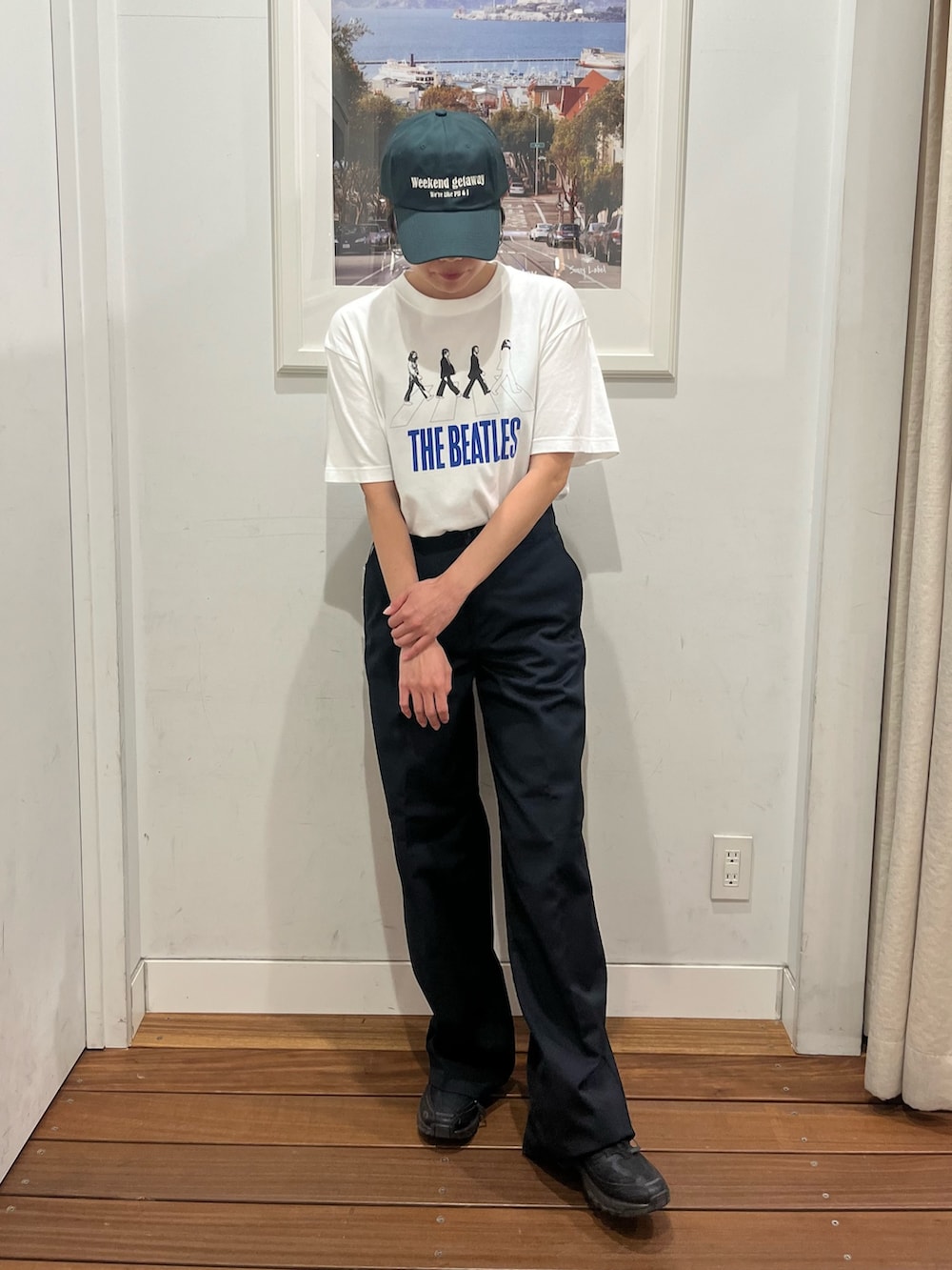 着用のBeatles teeは、古着っぽい柔らかい素材でビンテージ感があって着やすいです!
