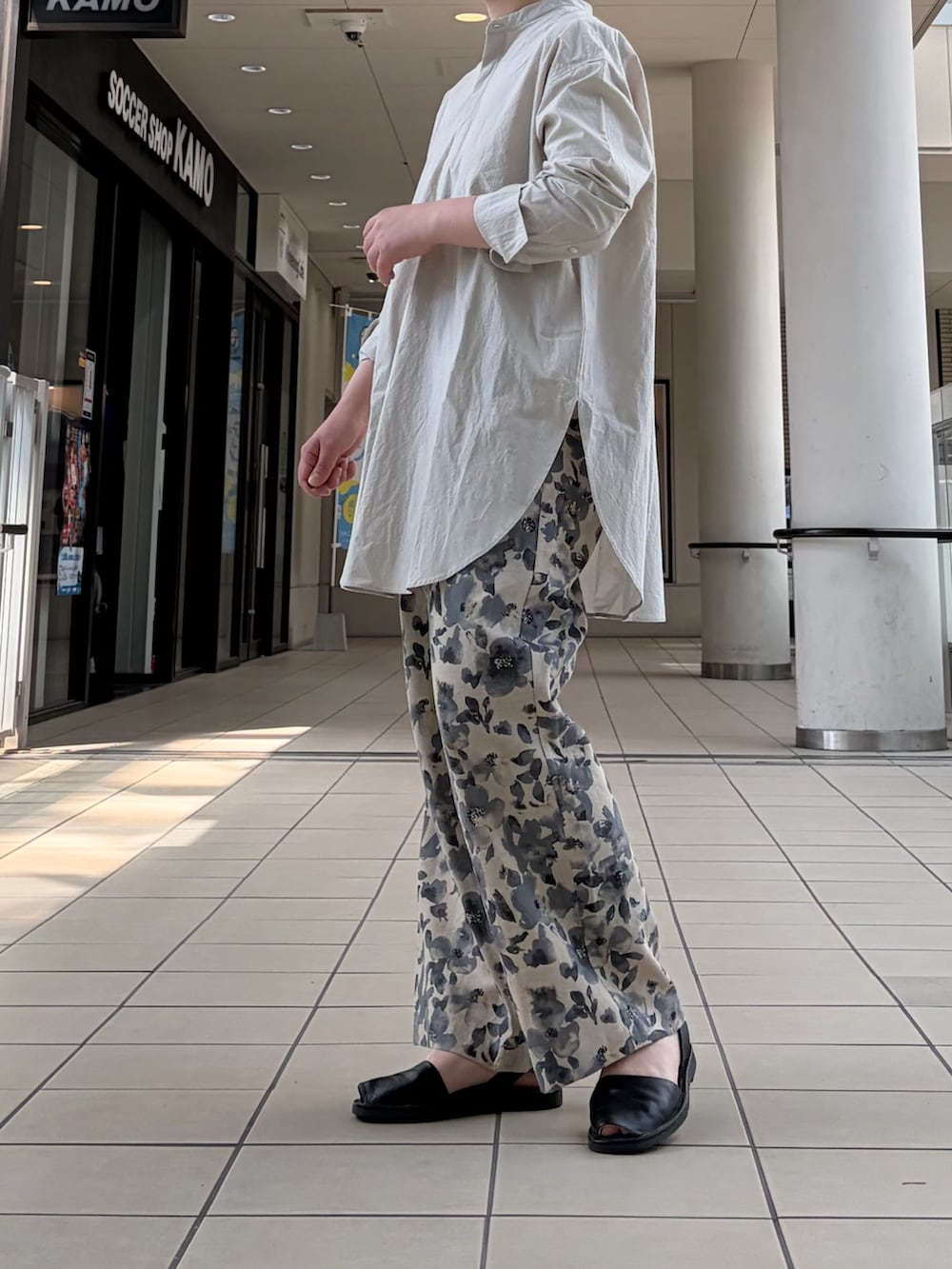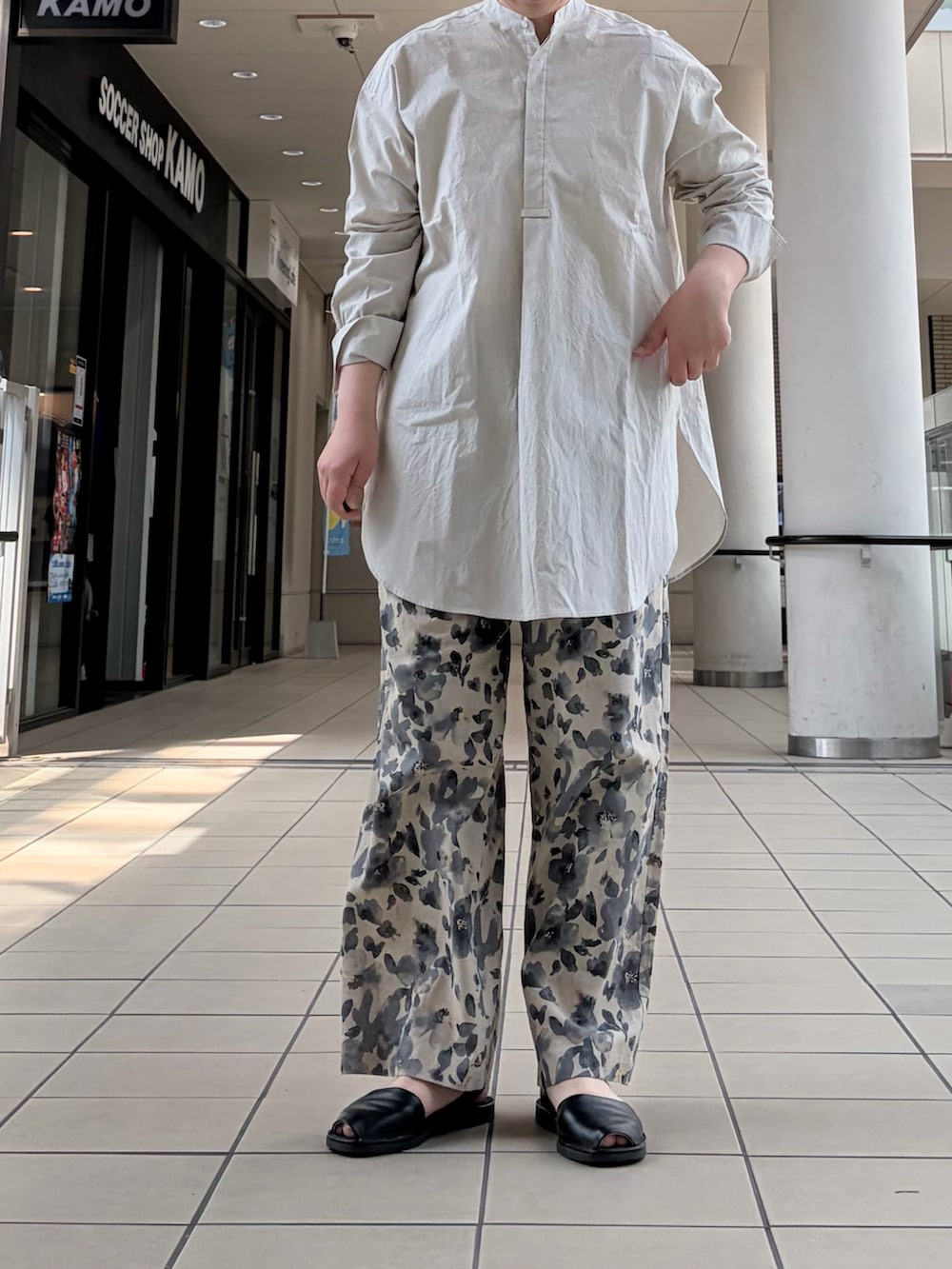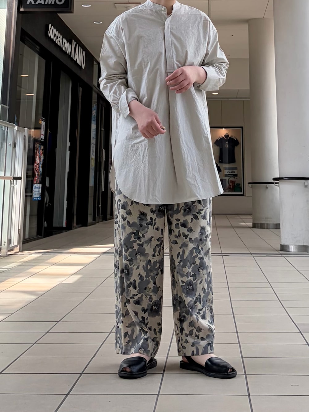 今回は、予約受付中になっているプリントイージーパンツとのレイヤードスタイルです。