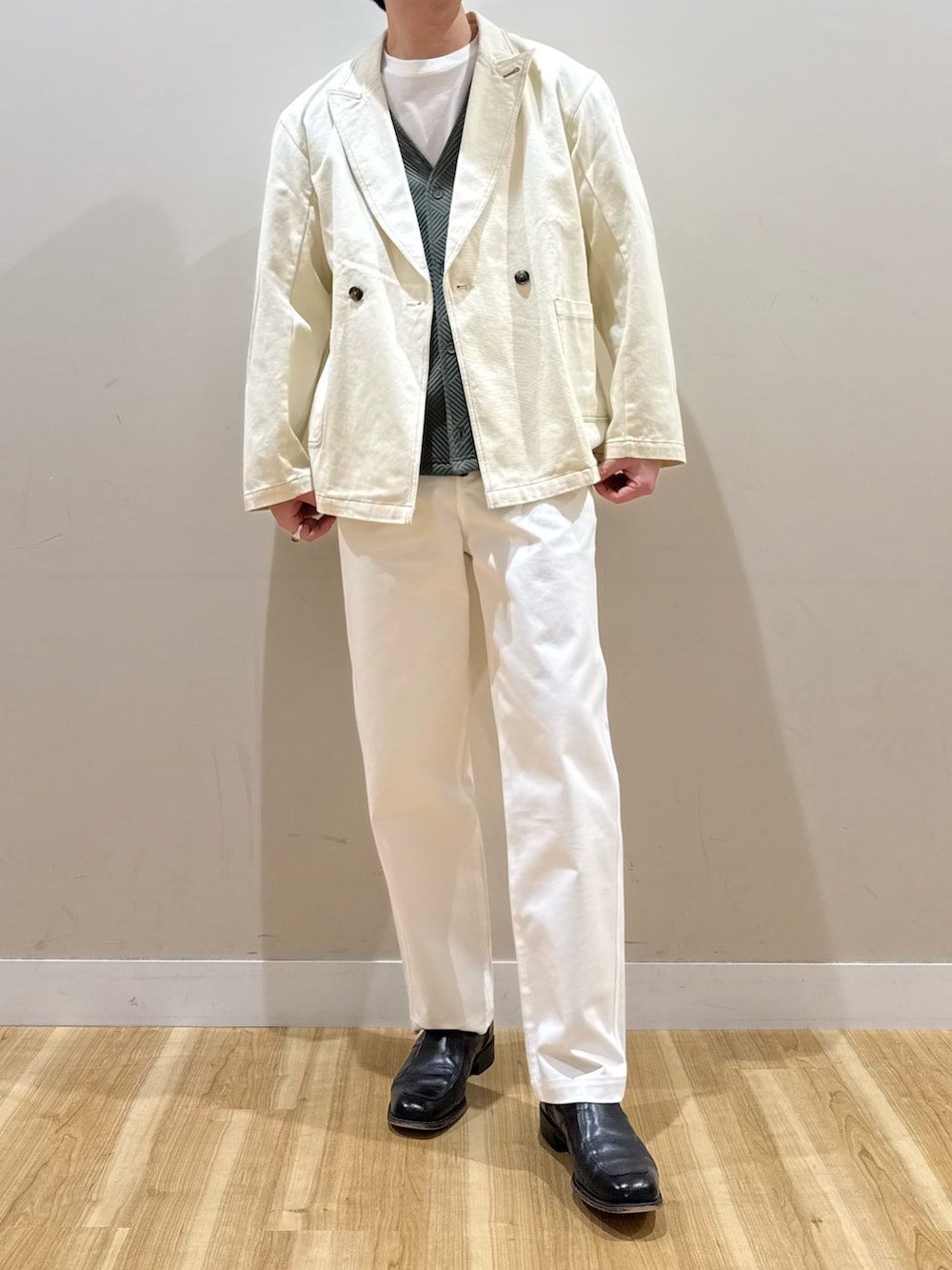 よく見ると柄のあるカーディガンになっているので、ノッペリとした印象にならず、視覚的アクセントとして活躍してくれるかと。