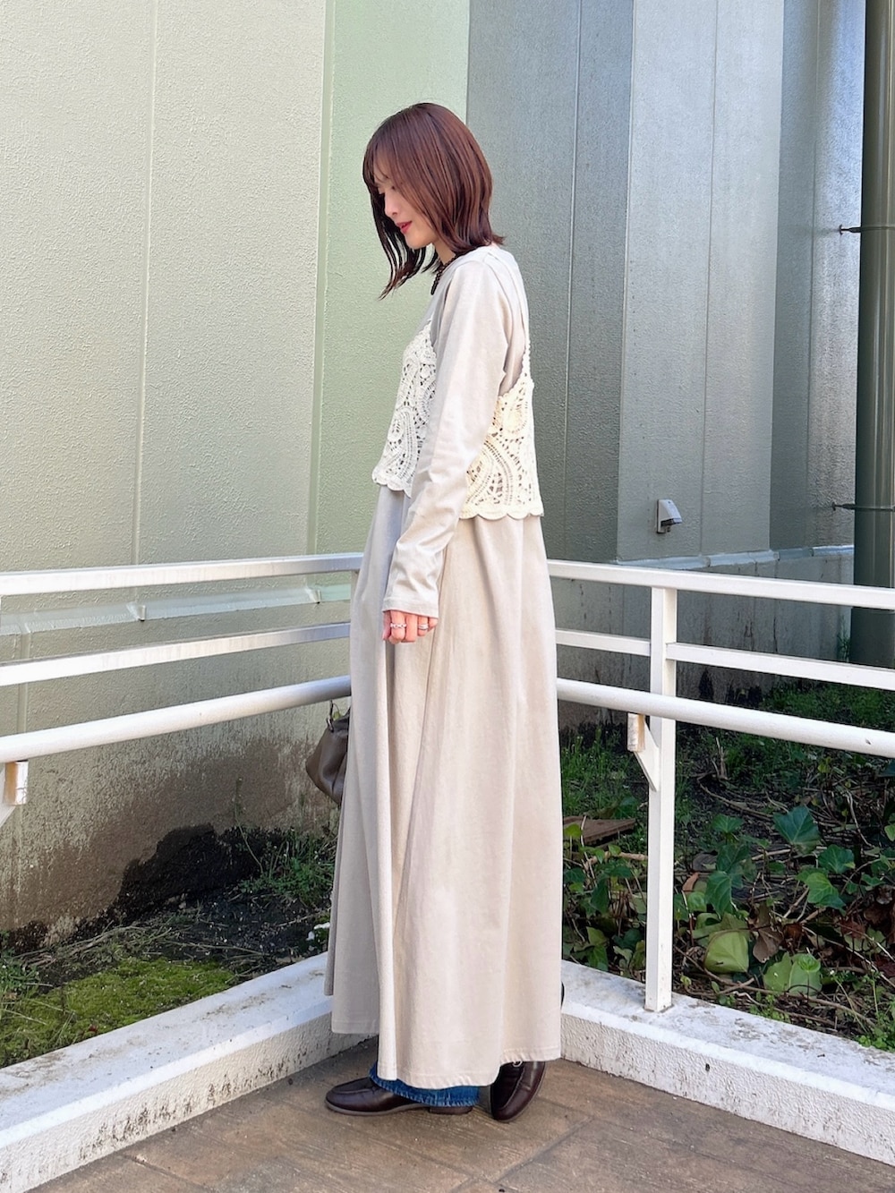 ワンピースもカットソー素材なので着やすいです😊