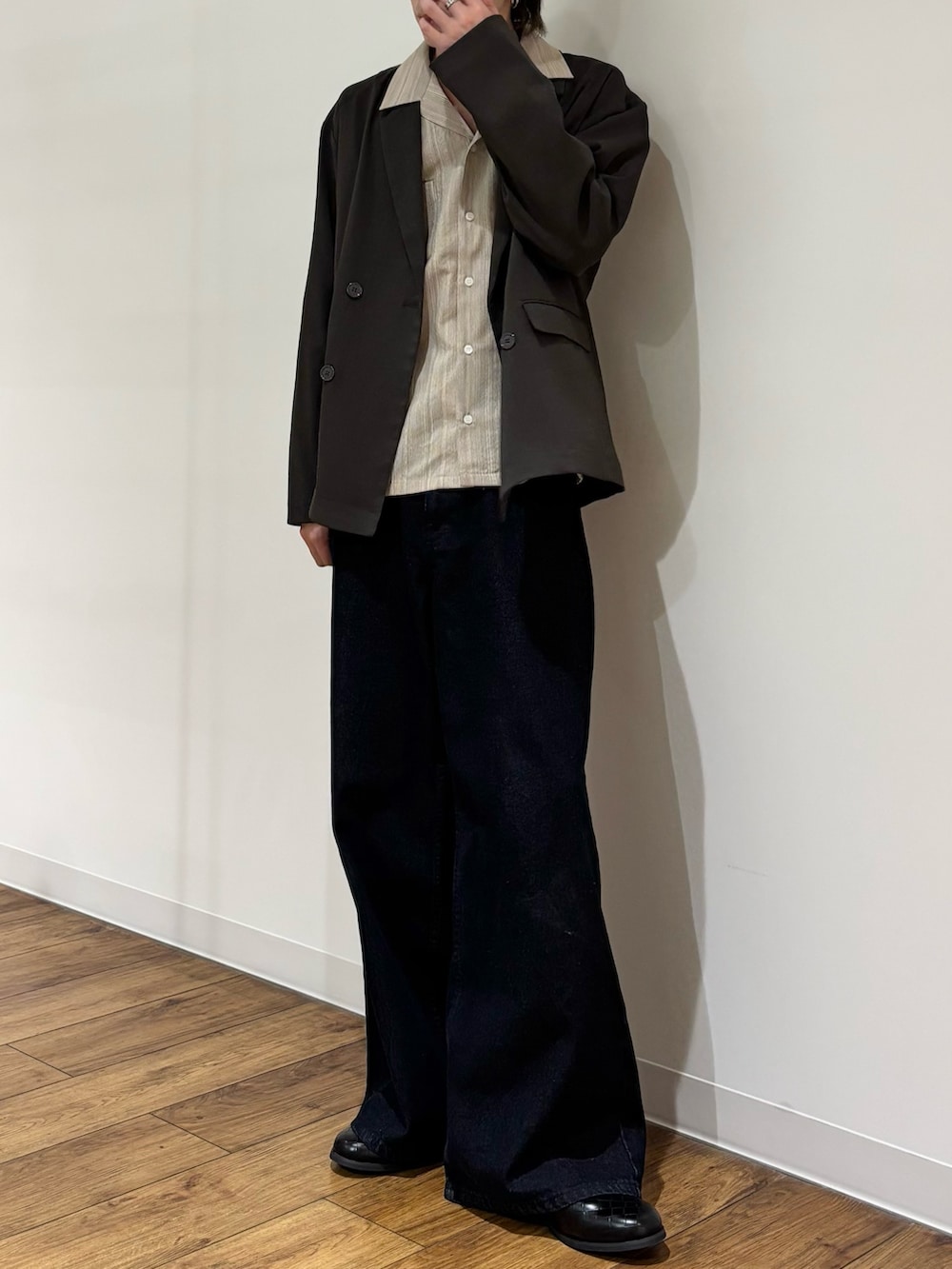 シャツの襟を外側にひと工夫😮