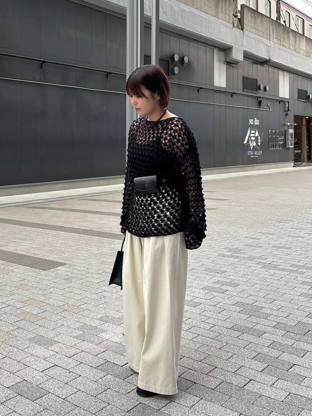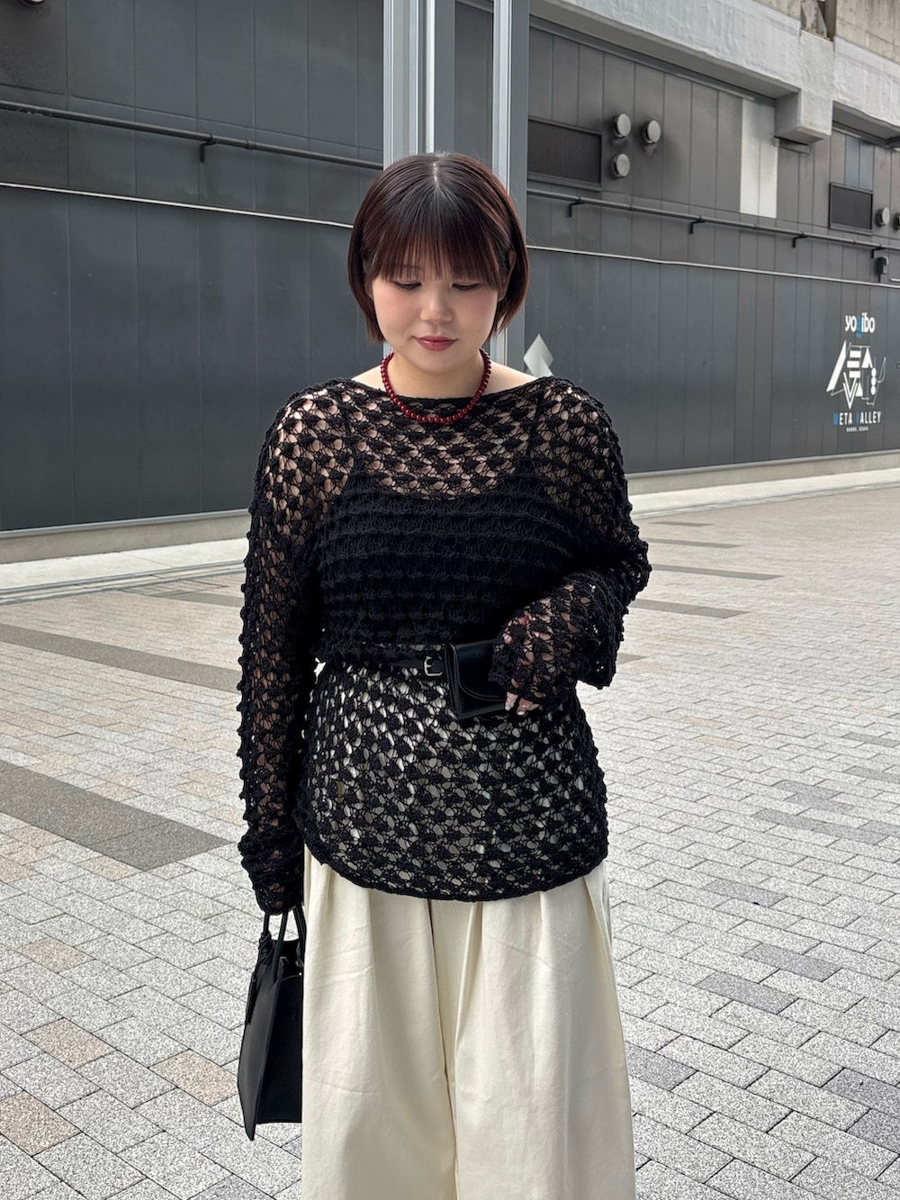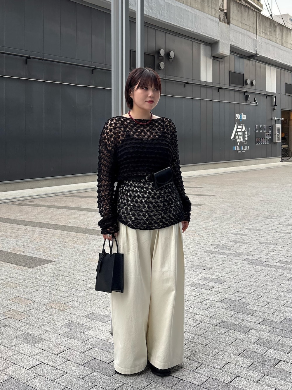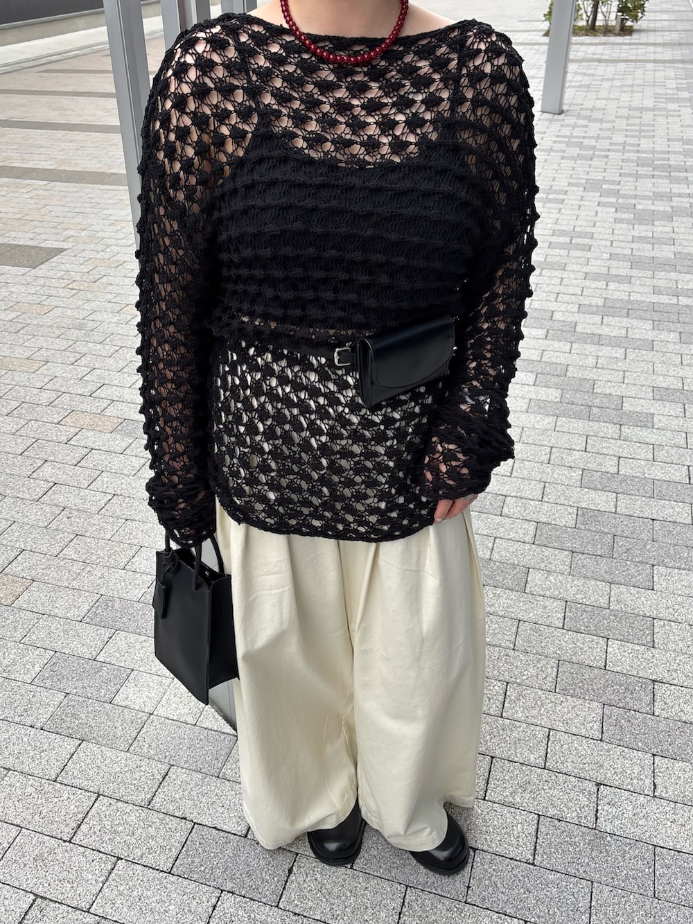 ・メッシュのニットがオーバーサイズなのでウエストマークして寸胴に見えないようにしてみました.ᐟ.ᐟ.ᐟ