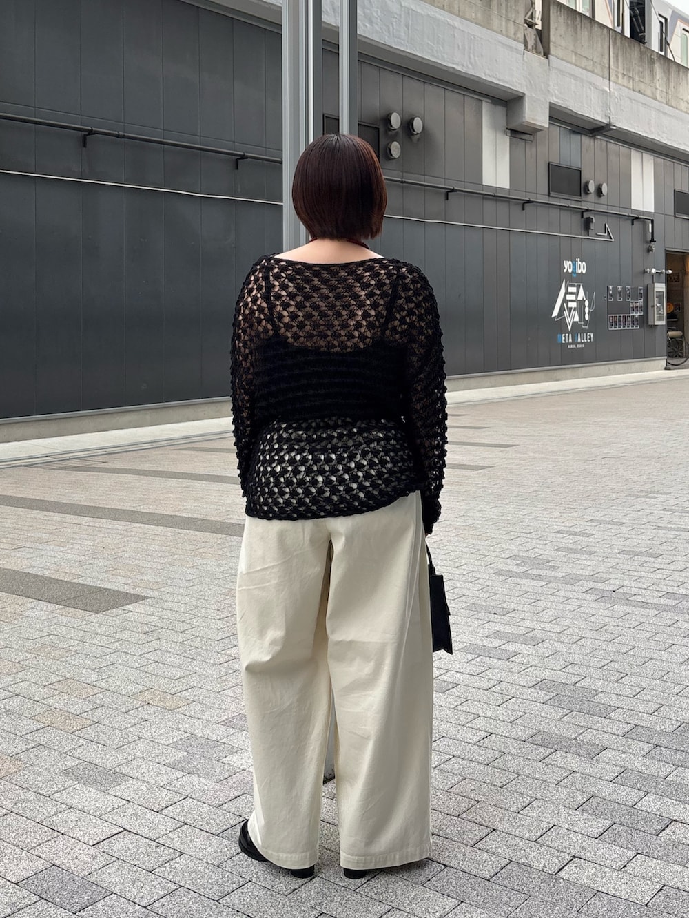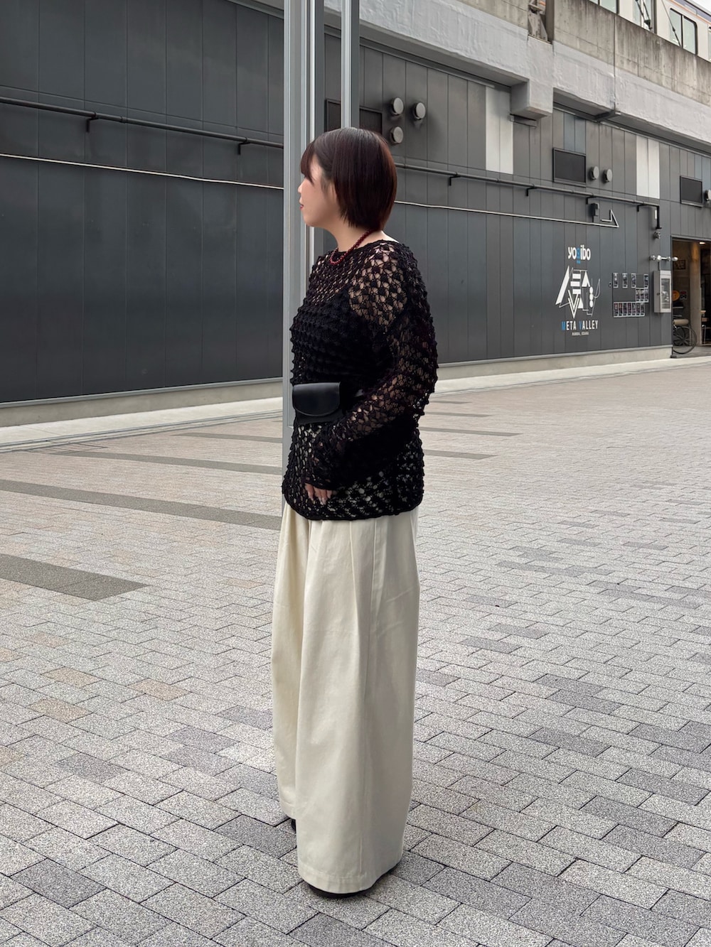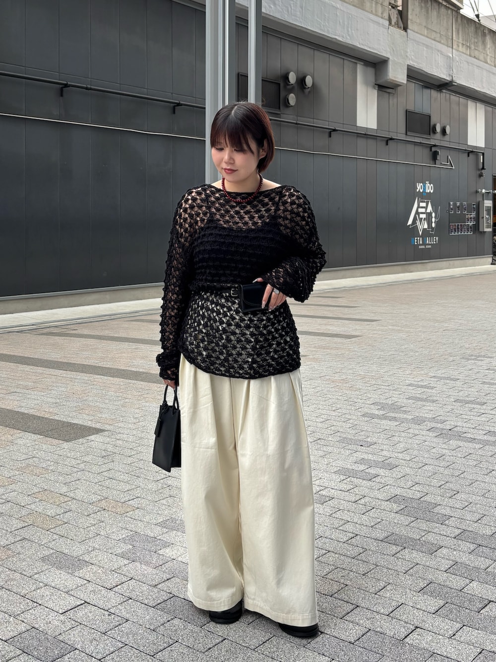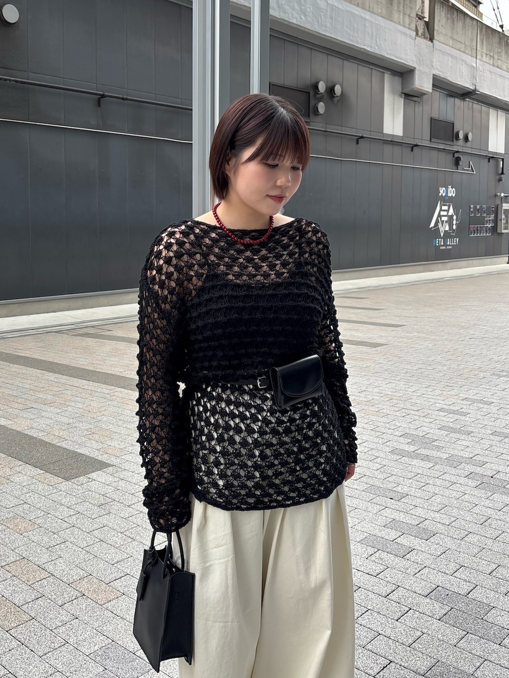 ・メッシュのニットがオーバーサイズなのでウエストマークして寸胴に見えないようにしてみました.ᐟ.ᐟ.ᐟ