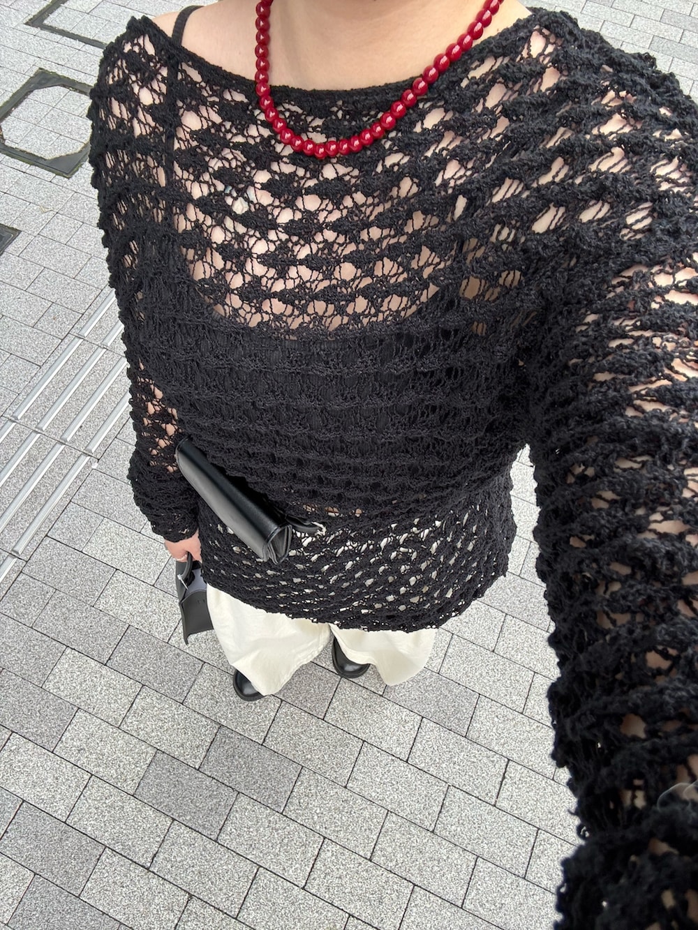クロシェ編みの女性らしさとルーズなシルエットの組み合わせが可愛いニットはこちら⸝꙳.˖