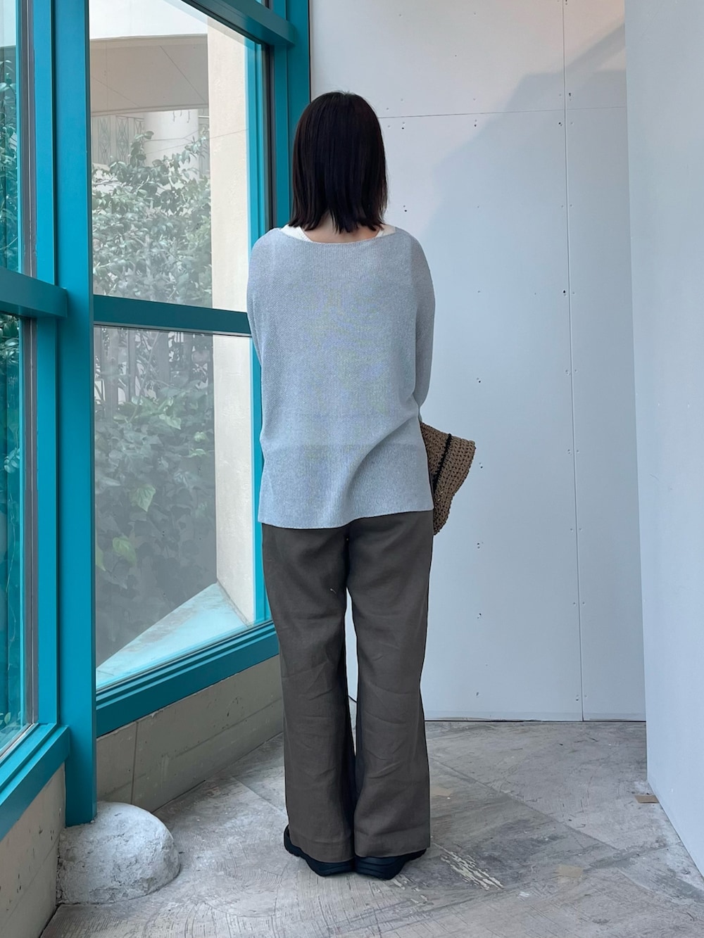 ボートネックで顔まわりはすっきり見えつつ、締めつけ感のない着心地。