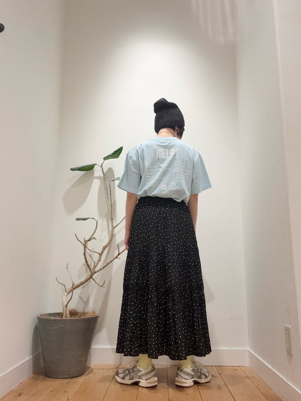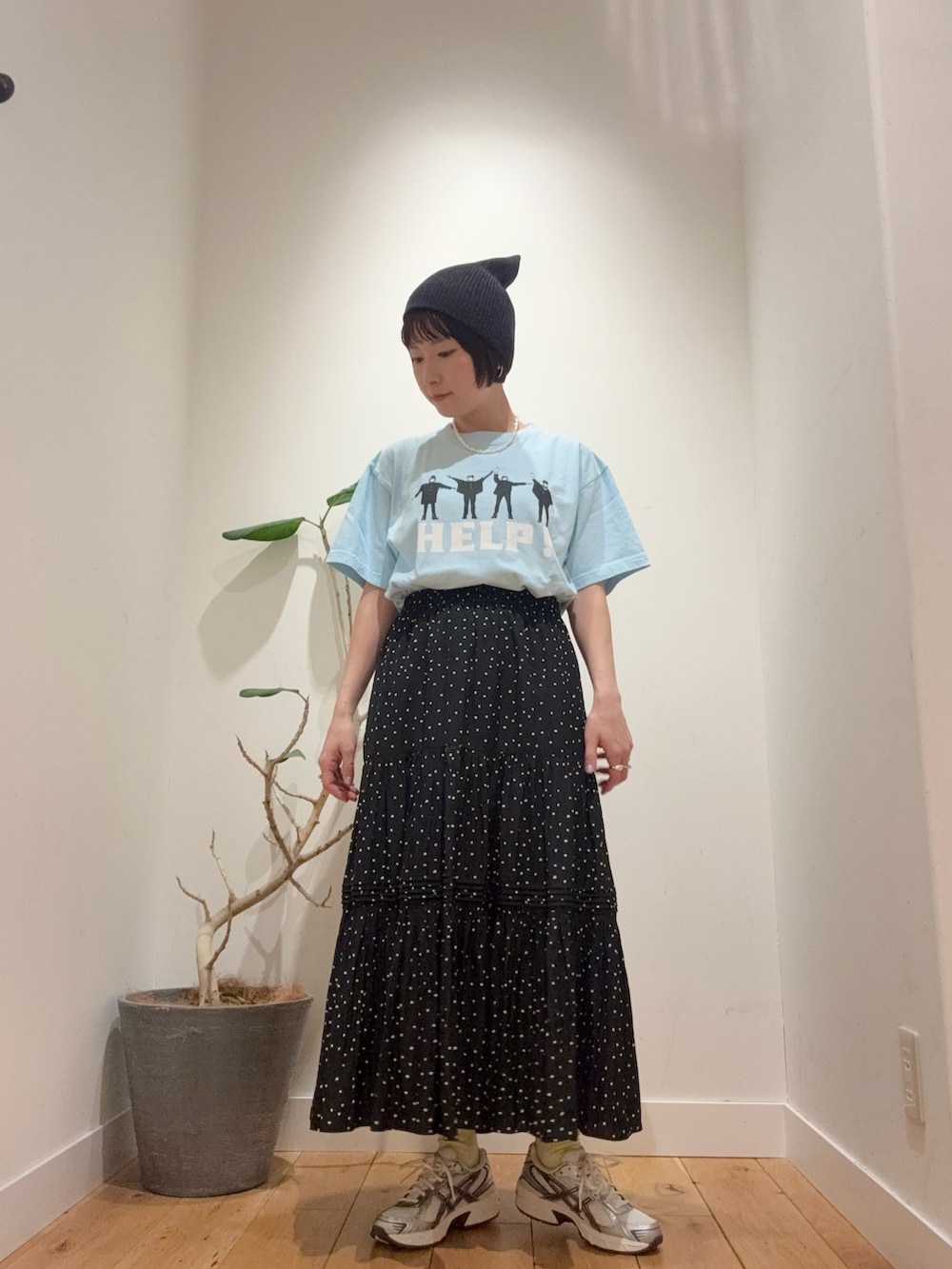 Tシャツにも相性ぴったりなドットスカートはブラウスやスウェットなど着回し易く