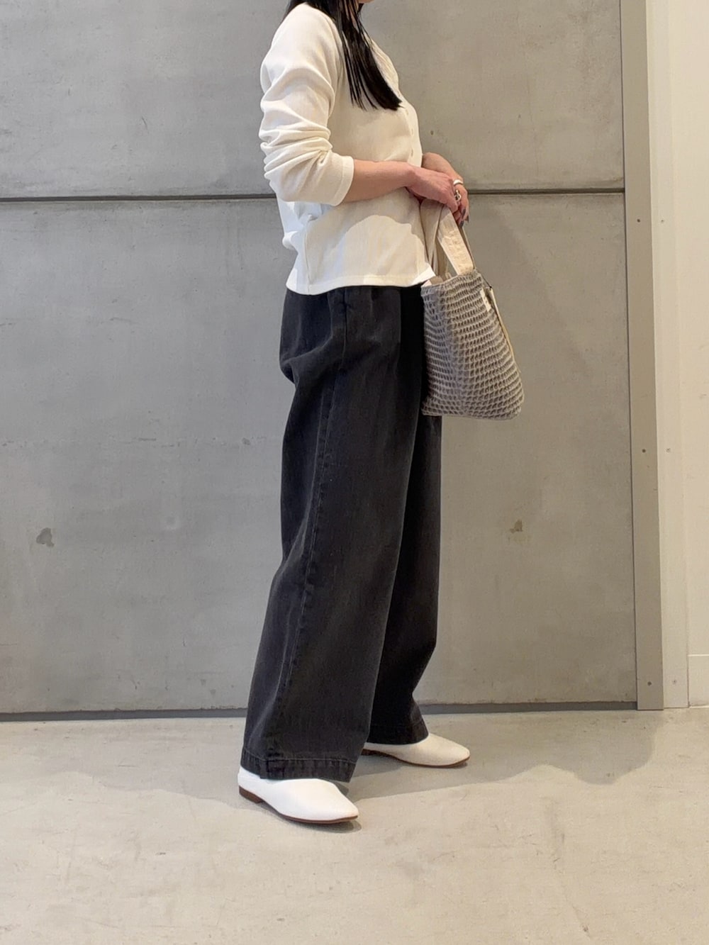 デニムパンツはフリーサイズですが、ウエストがゴムで紐も付いているので楽ですし、安心です✨ゆったりしたシルエットですが、ワイドすぎないシルエットがどんなトップスでも合わせやすい万能デニムです✨