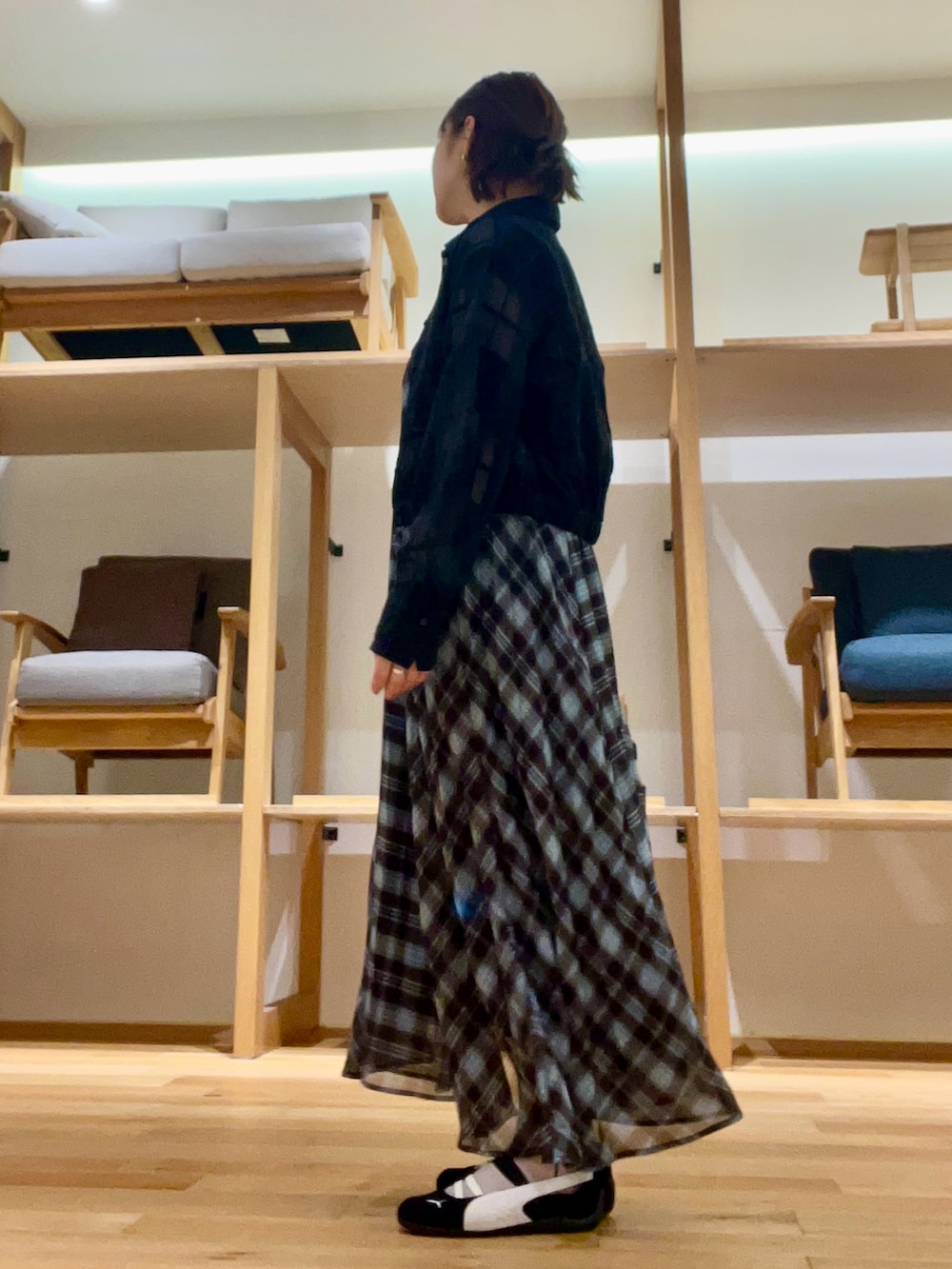 人気のチェックワンピースはランダムな着丈で動きがあり軽やかなアイテムです‼︎