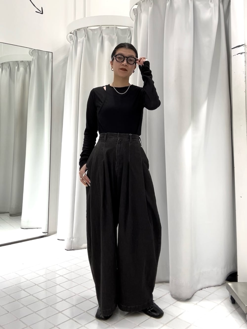 トップスは首元のチラッと開いたスリットが程よく肌見せができてオススメ!