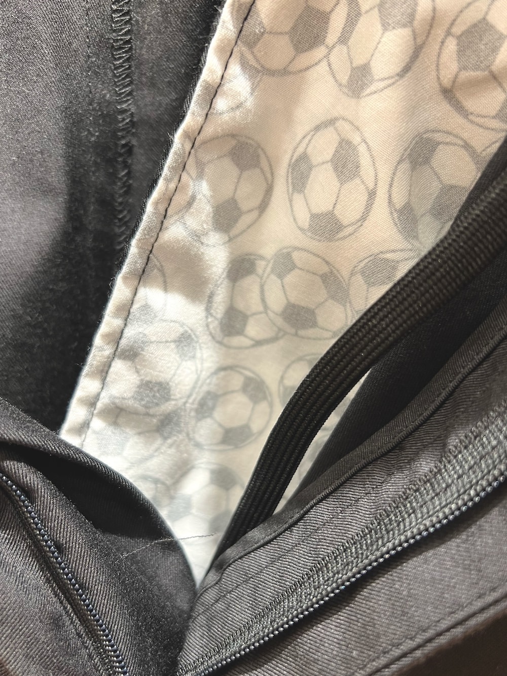 ボトムスのLOTTOのスラックスはワイドで、裏地にはサッカーボールいて細かいところまでこだわりが見える商品です!