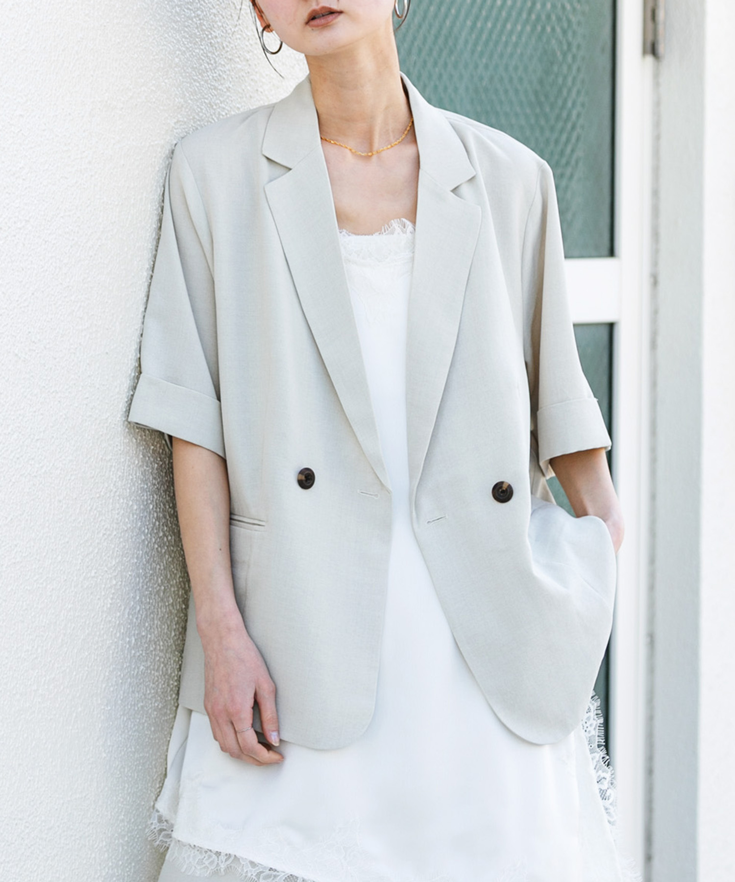 涼し気なワントーンコーデです!