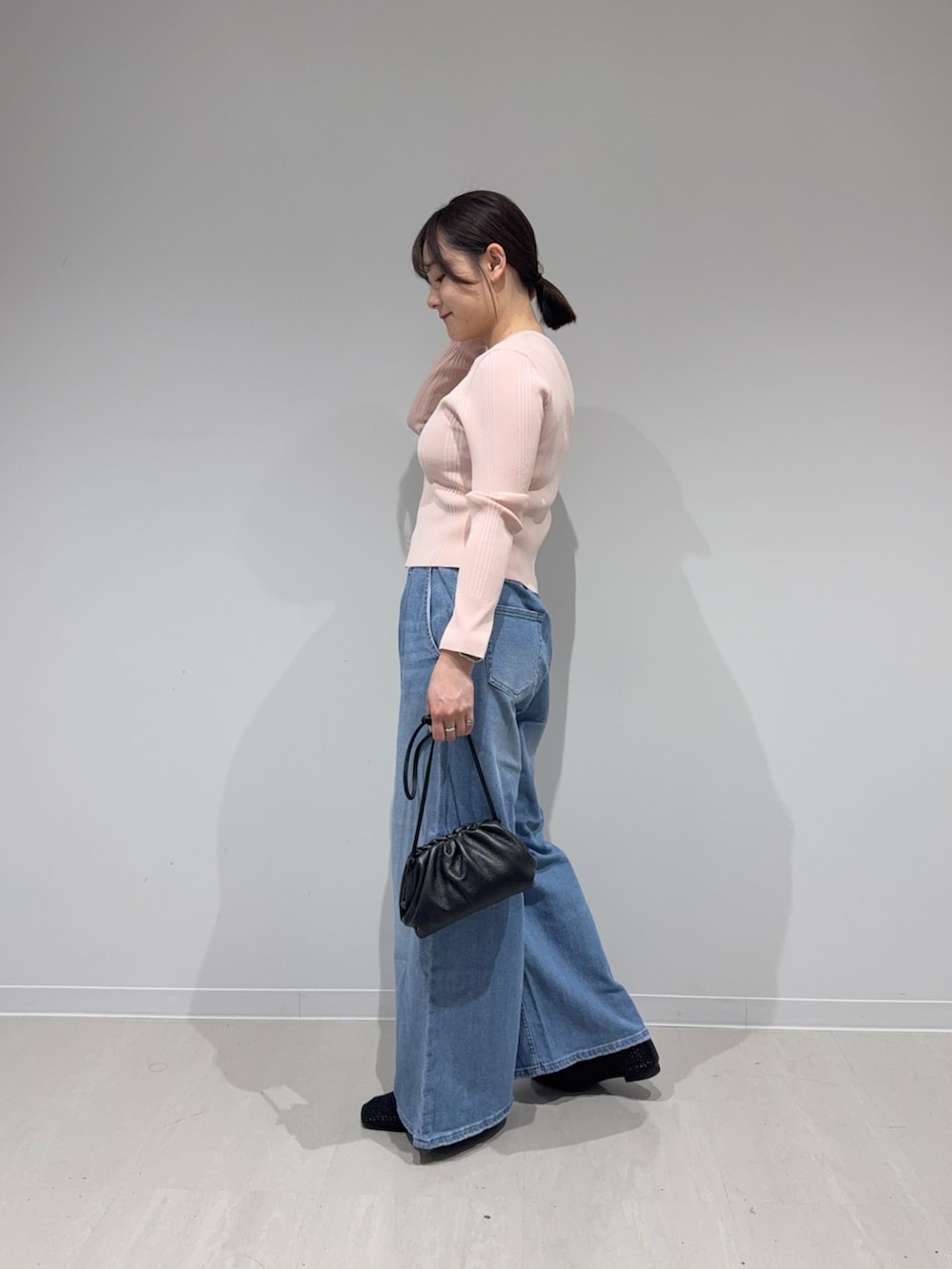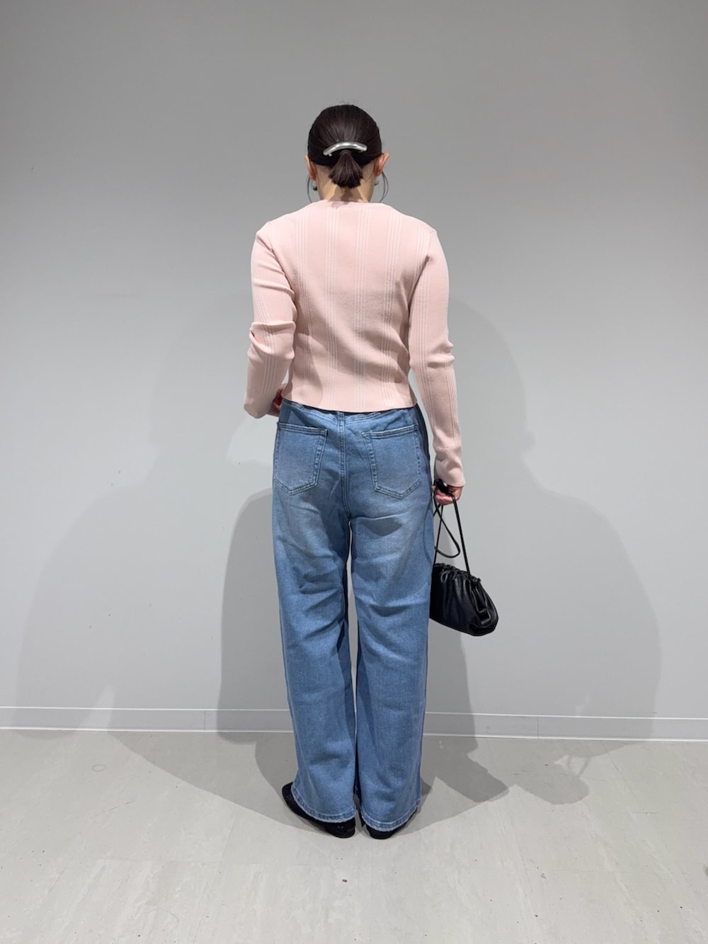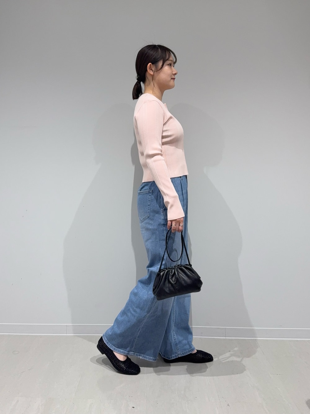 コンパクトなニットカーディガンは春らしくピンクをチョイス☑︎