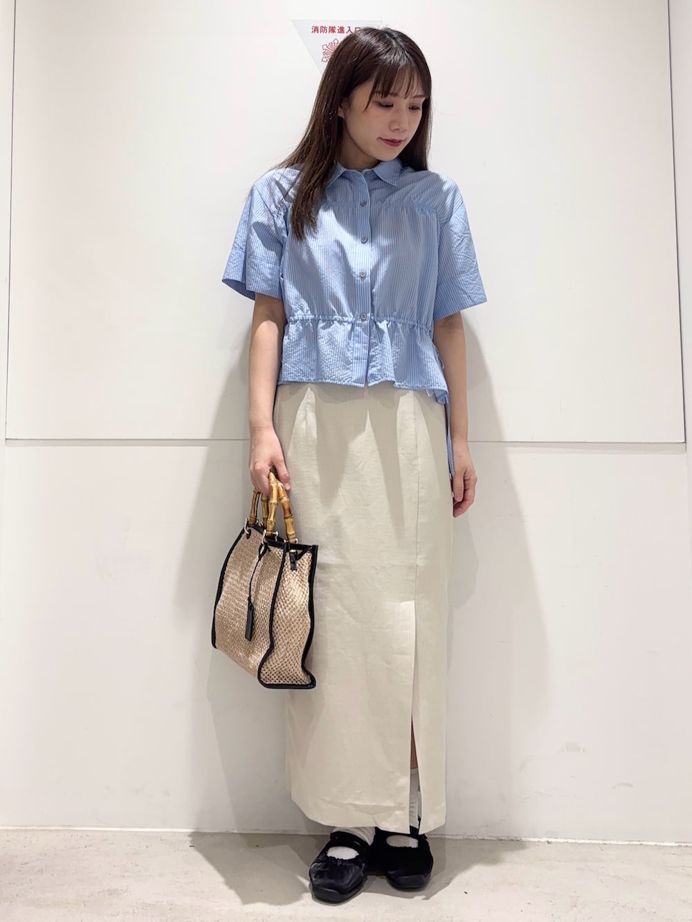 トップスはシャーリングになっており、インせずともすっきりしたシルエットに○