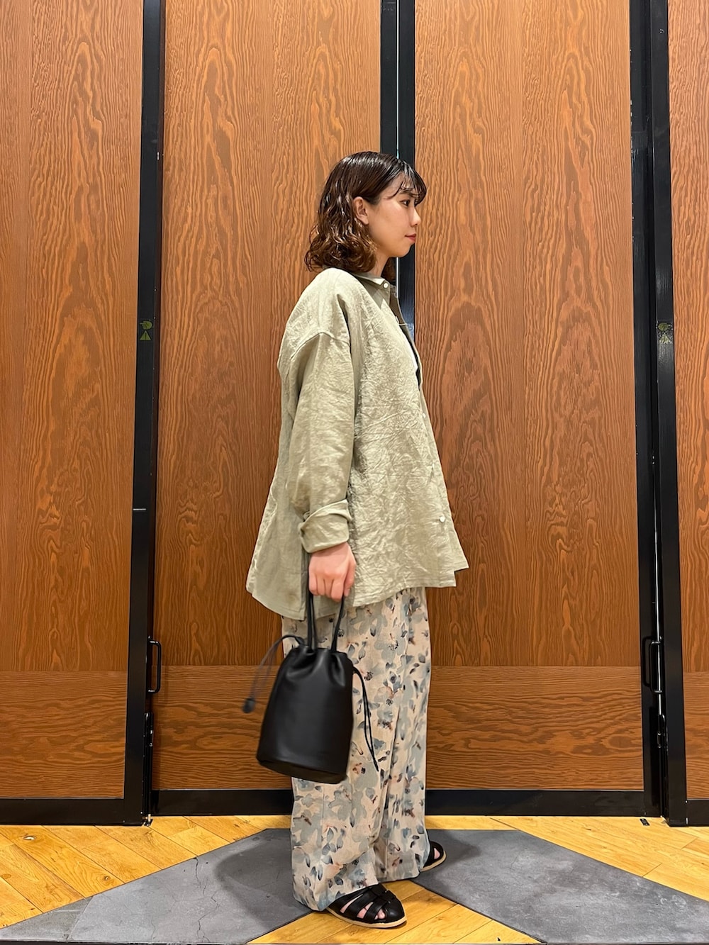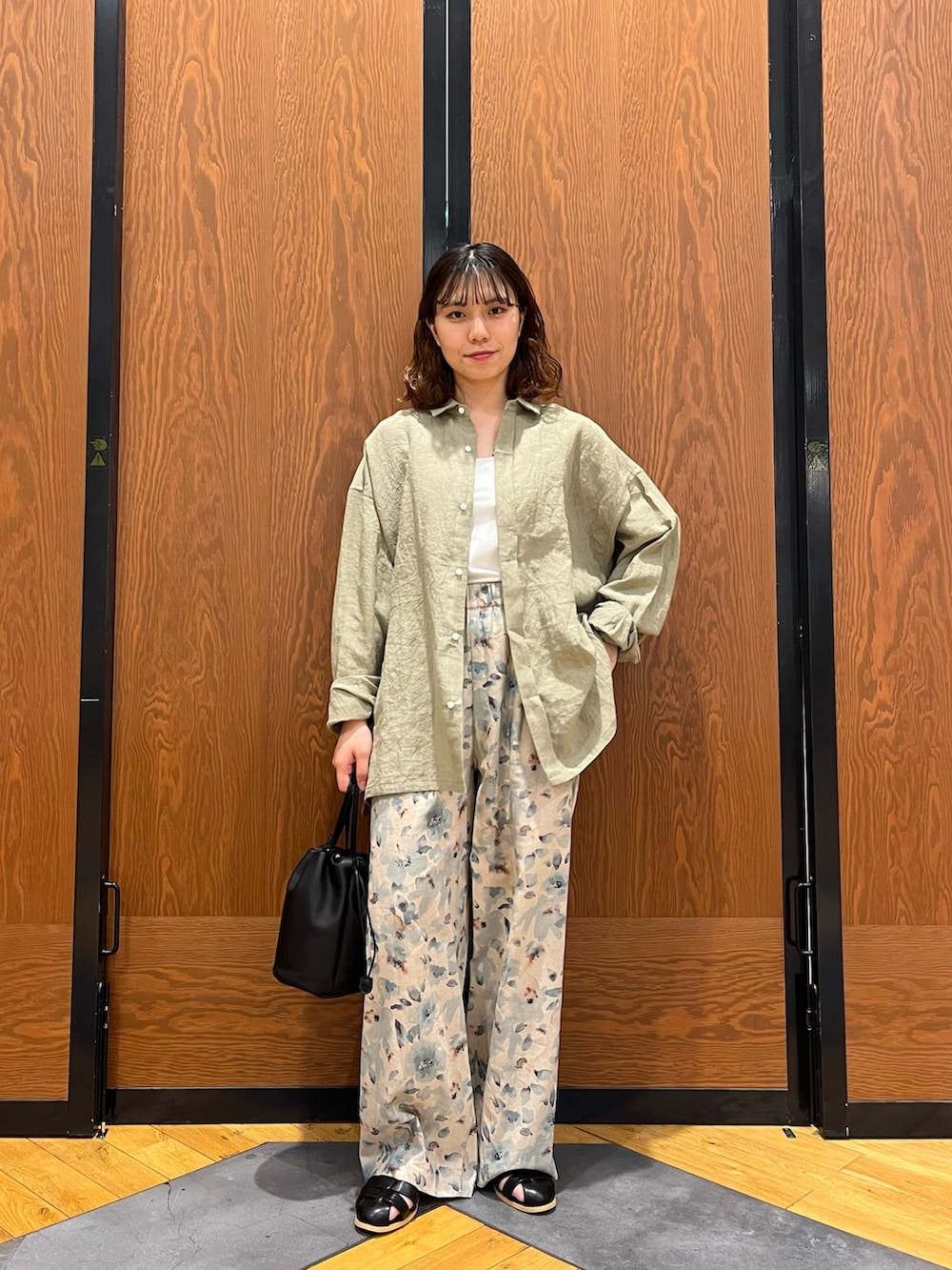 パンツの色味に合わせて淡いカラーのシャツを選びました!