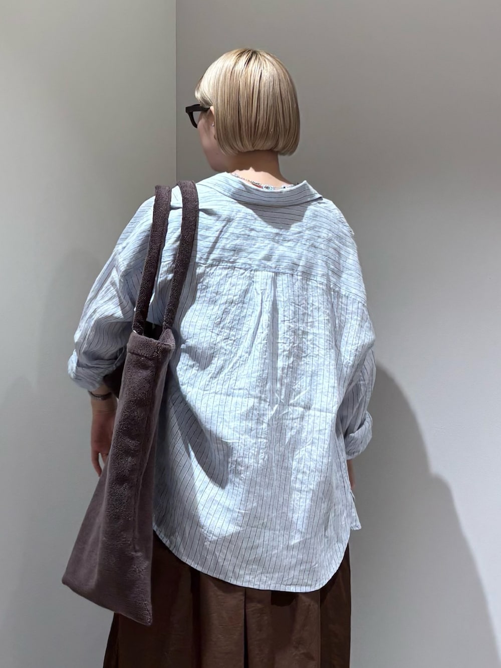リネンのシャツを羽織っています。