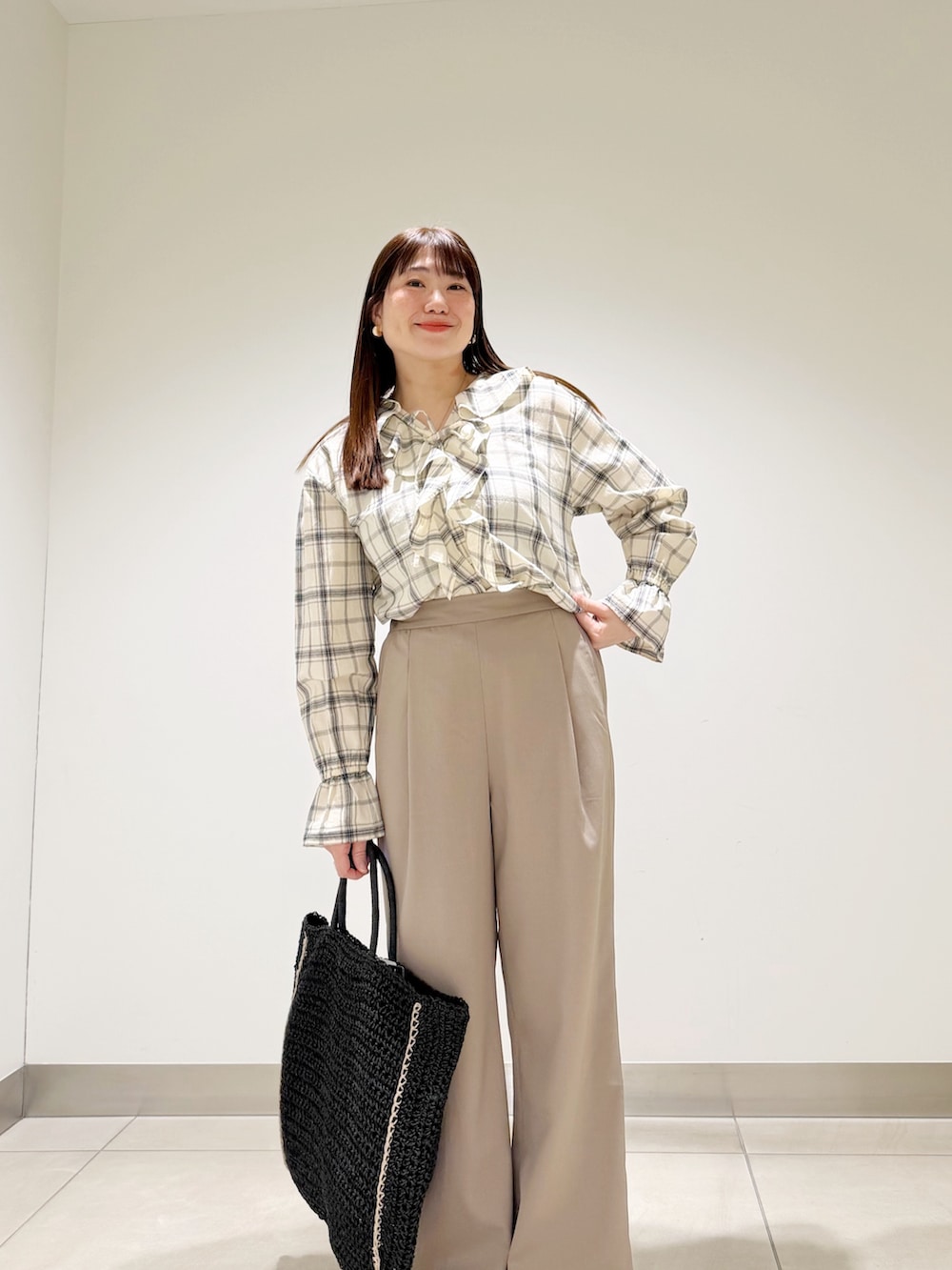 フリルのデザインが可愛いです☆チェック柄も柔らかいカラーなので幼くなりすぎず着ていただけます☆