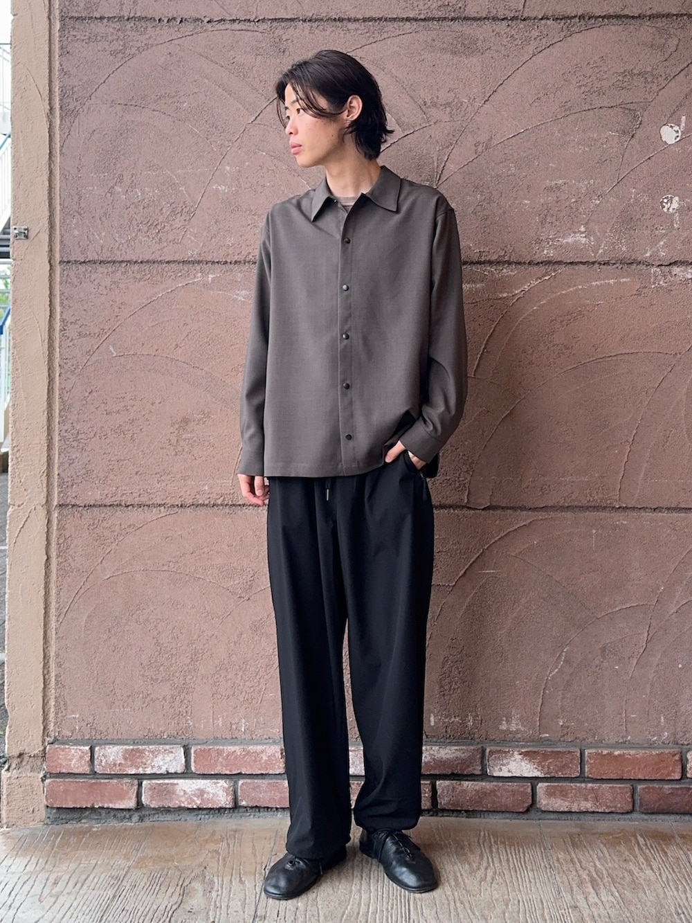 シャツはスナップボタンになっているので、着脱が楽にできます!色味も良いので、おすすめです!ナイロンパンツはストレッチ性があるのでとても楽です!ウエストも紐での調節なので、快適に履いていただけると思います!