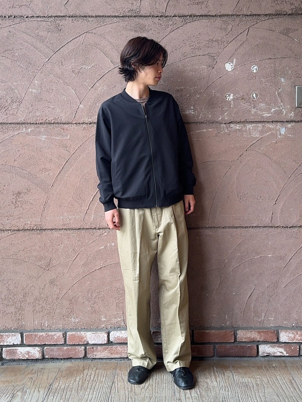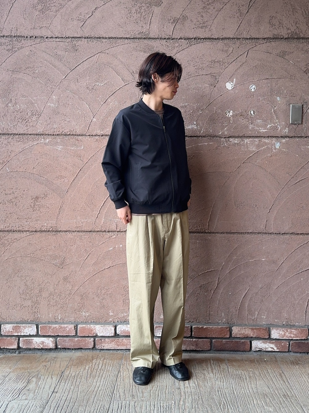今回のコーディネートはジップアップの黒のブルゾンにコットンリネンのチノパンツを合わせたコーデです!ブルゾンはストレッチ性が効いているので、快適に着ていただけます!チノパンツはリネン混なので、涼しくこれからの季節にとてもおすすめなアイテムです!ぜひ参考にしてください!