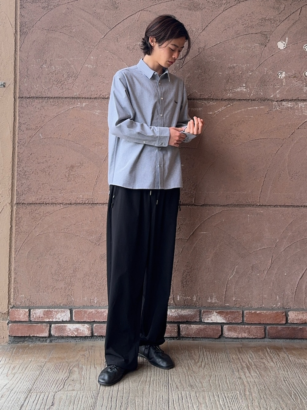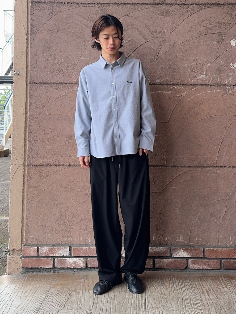 今回のコーディネートは刺繍が入ったレギュラーカラーシャツに黒のナイロンパンツを合わせました!シャツは胸にワンポイント刺繍が入っています!今の季節たくさん着ていただけると思います!パンツはストレッチ性があり、イージーパンツなので、ウエストを紐で調節になってます!裾にドローコードが付いているので、サイズ調節もしやすいです!楽にかっこいいパンツです!