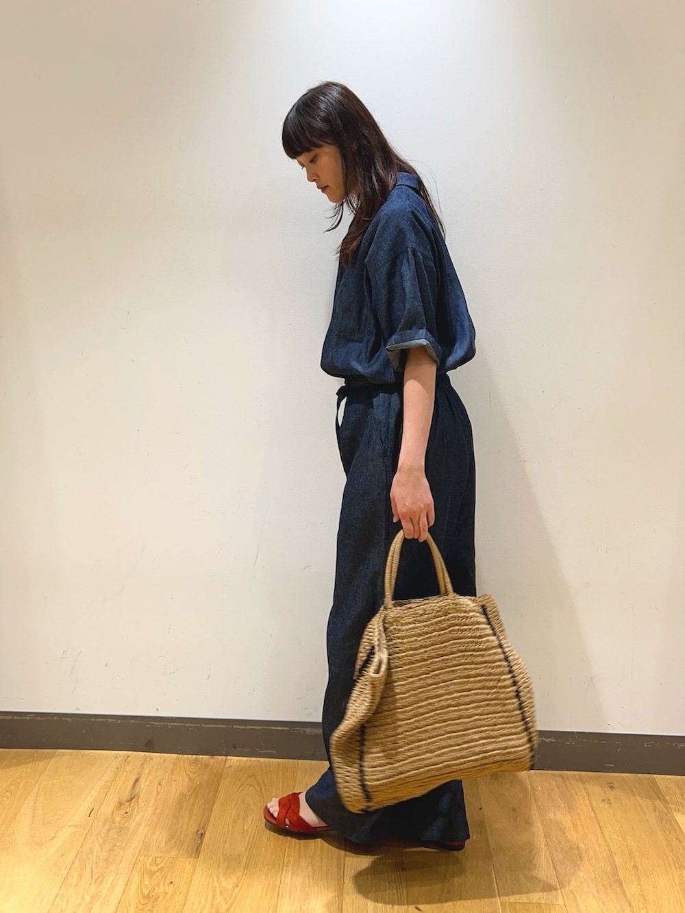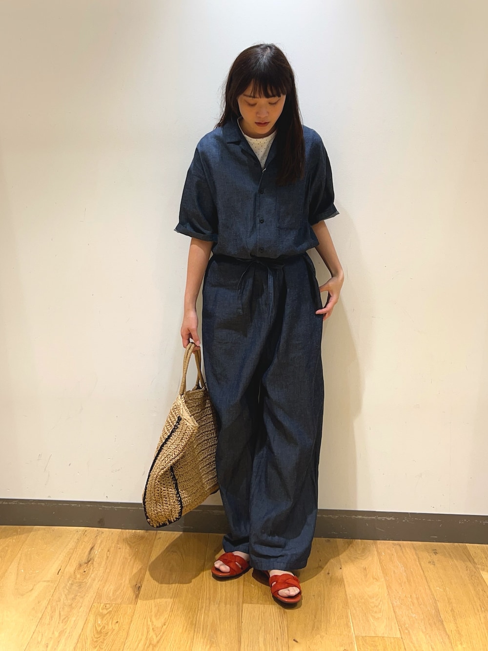 着心地やわらかな、ライトなデニムオールインワン!開襟でリラックスした抜け感と、インナーで着用したドットTがPoint☝🏻