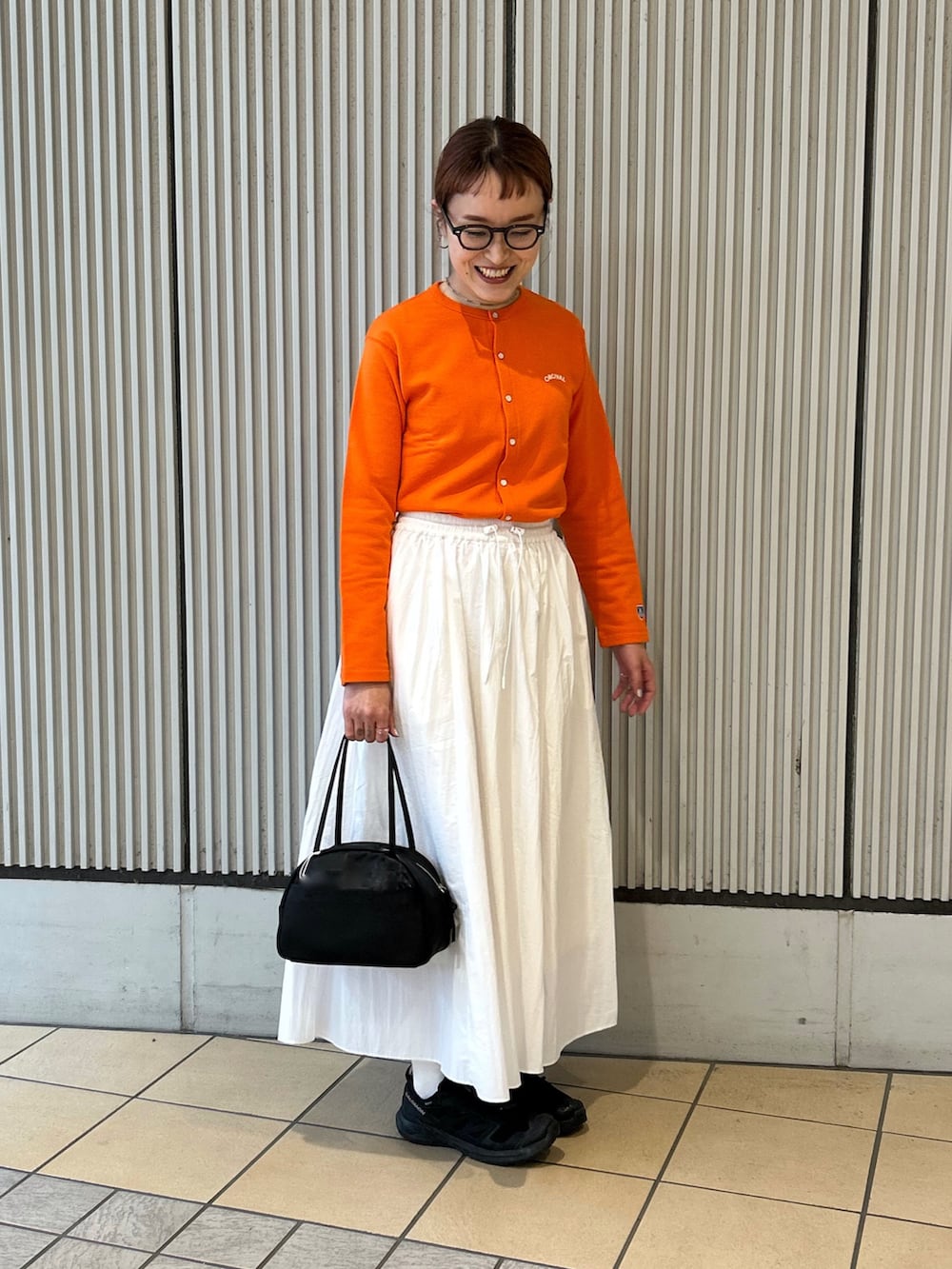 カーディガンのオレンジ可愛いです。