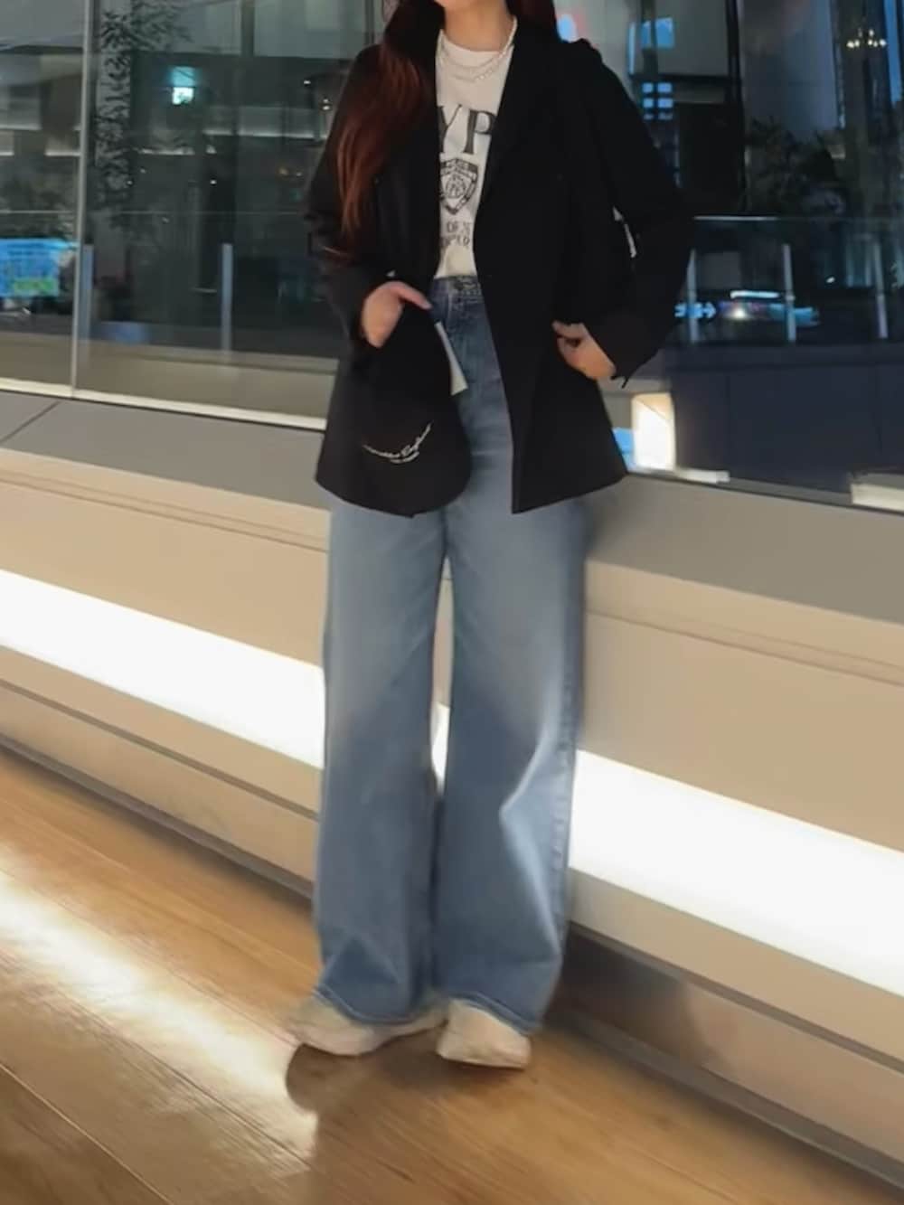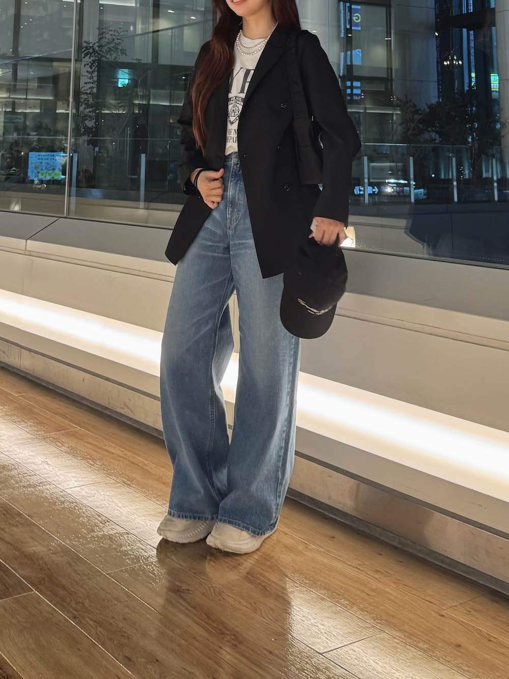 ジャケットをカジュアル着こなしたい時は、Tシャツ✖️デニムパンツの組み合わせがおすすめです🙌🏻