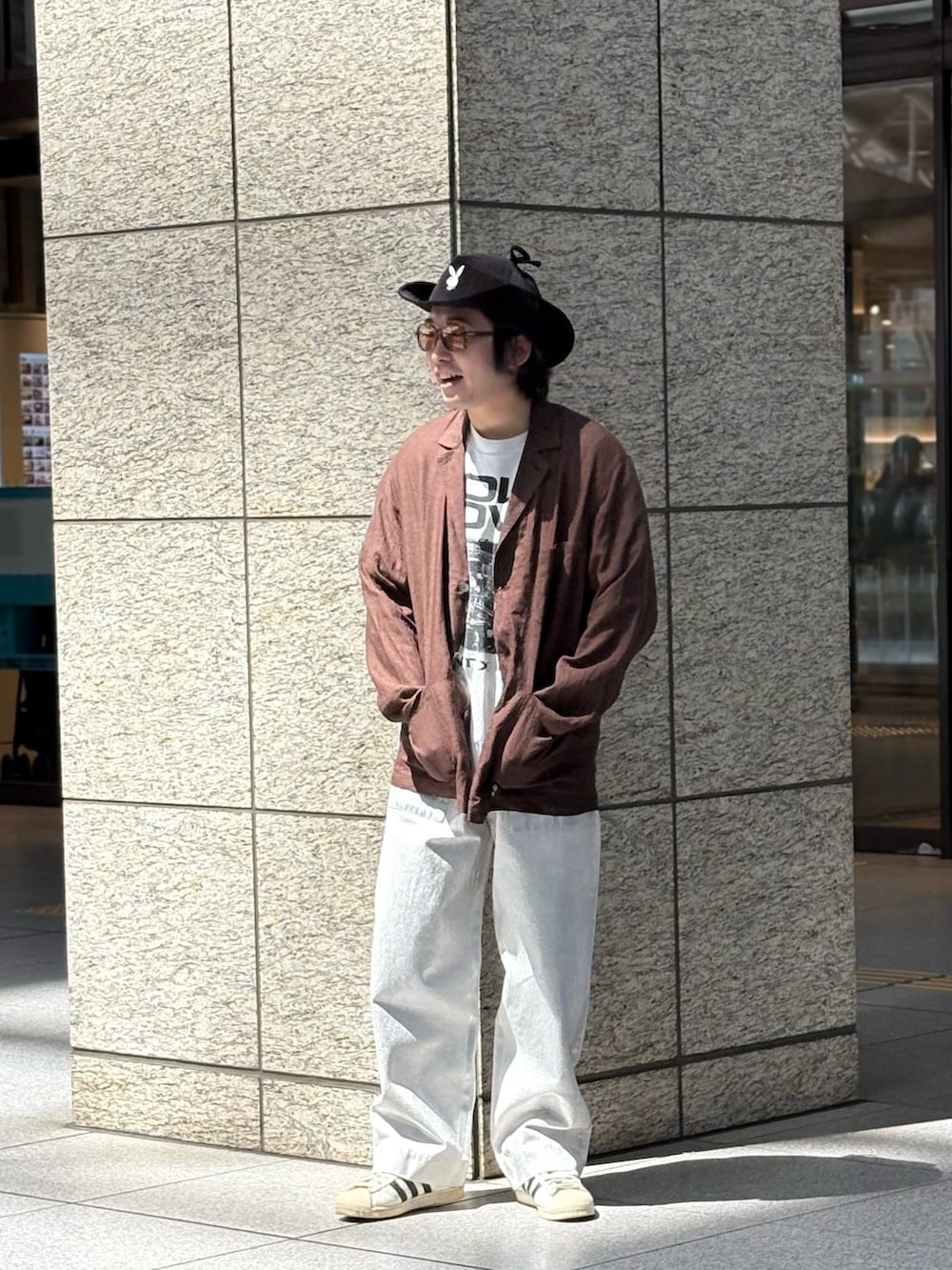 プリントTシャツをただ着るとカジュアルなので、ちょっとした羽織りもの特にリネンで編み込まれている羽織りだと夏でも着れちゃいます!