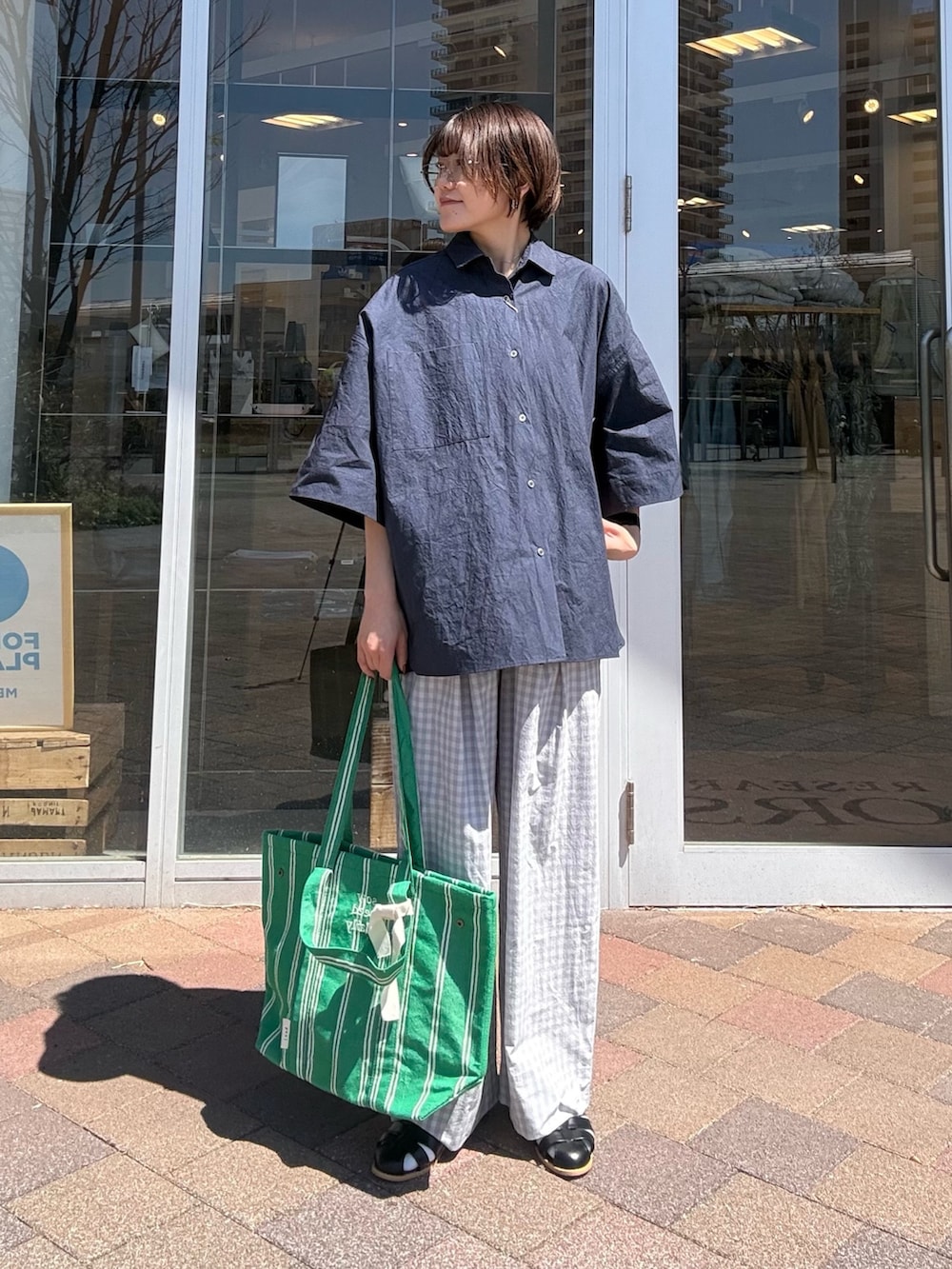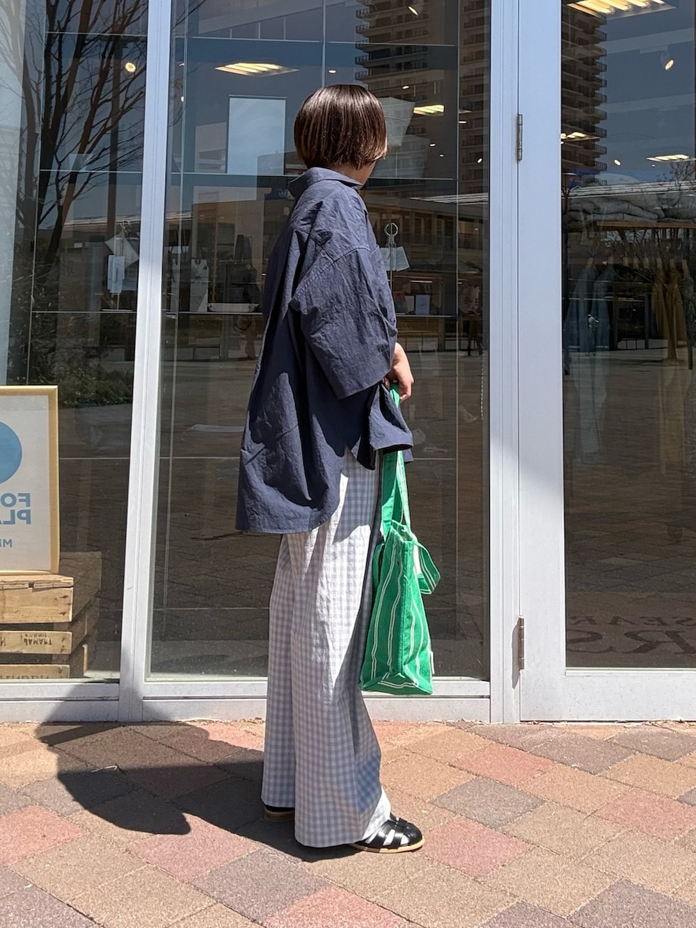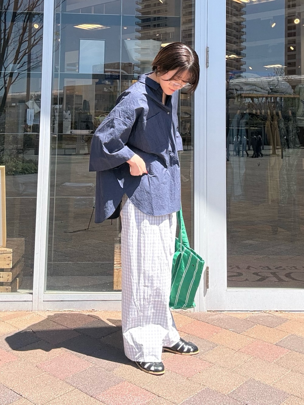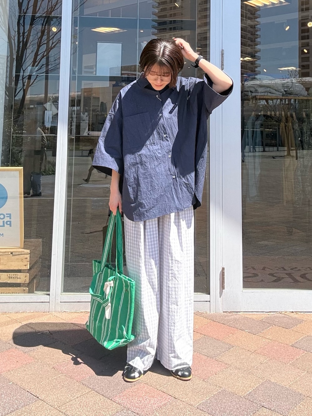 柔らかなギンガムチェックが目を引くワイドパンツです。