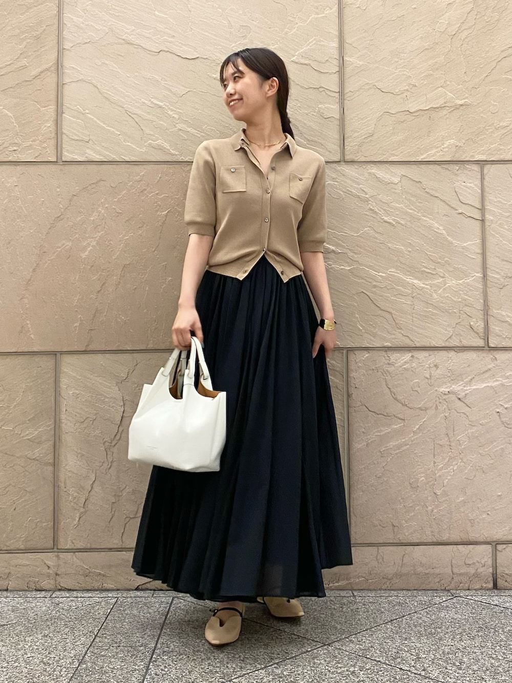 ボタンはちょっと開けて、アクセつけて、、🤍