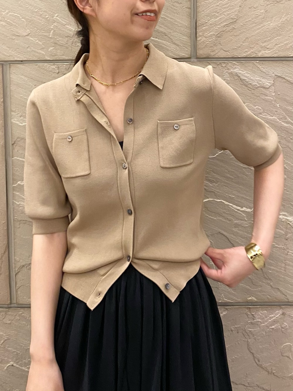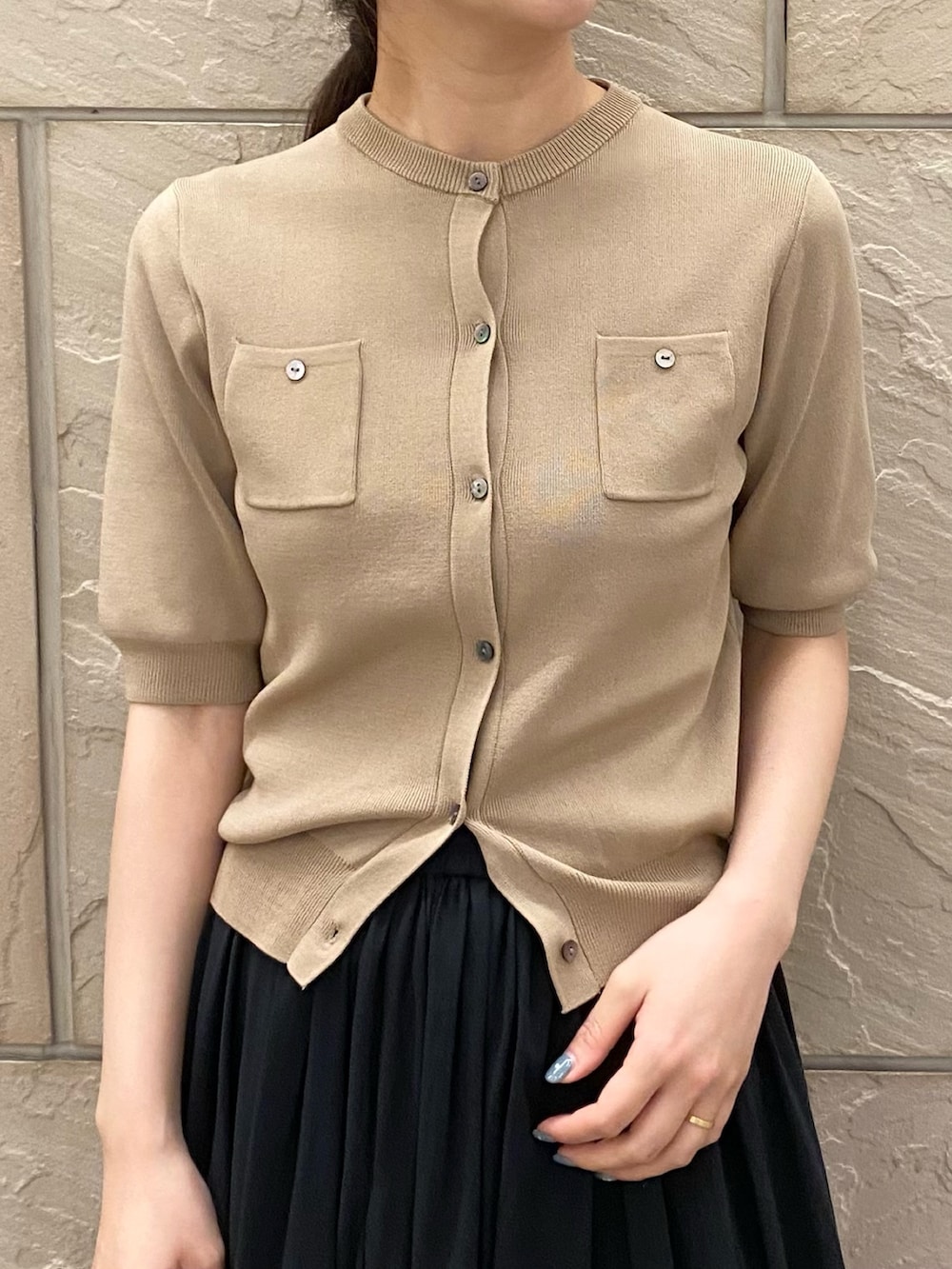 カーディガンですが前を留めてトップスとして着るのがおすすめです◎