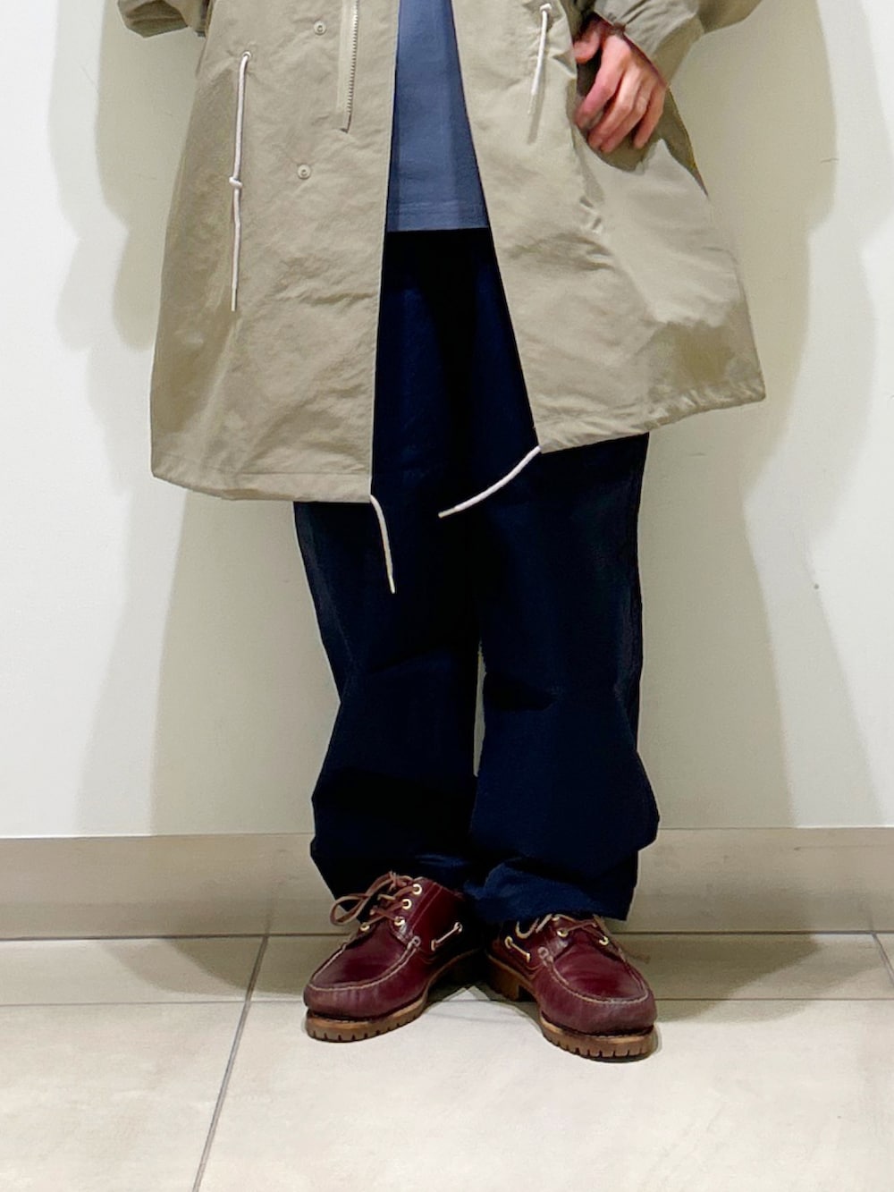 ウエストや裾のドローコードでシルエット調整ができ、コーデに応じてすっきり見せることもゆったり着ることもできます。