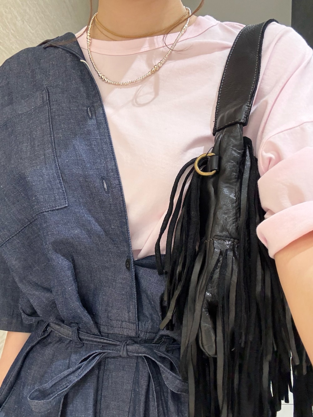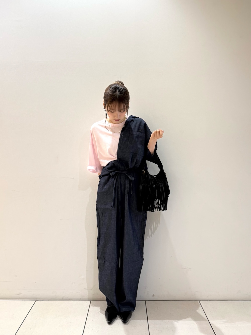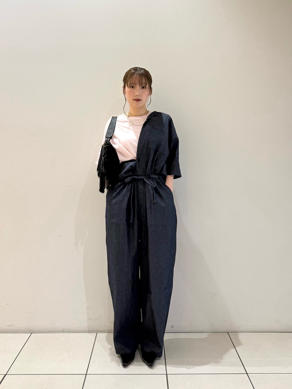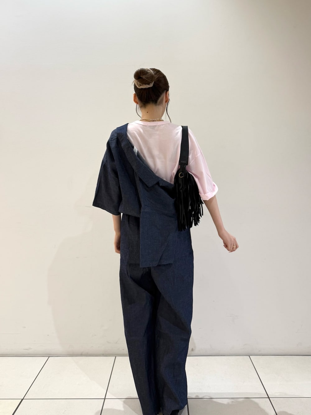 かぐれ綿麻デニムハーフスリーブオールインワン- カラー: