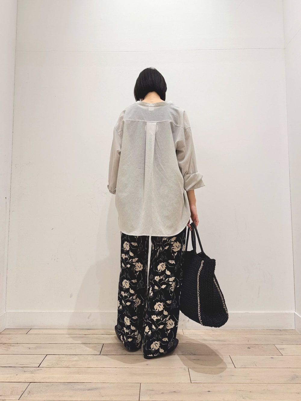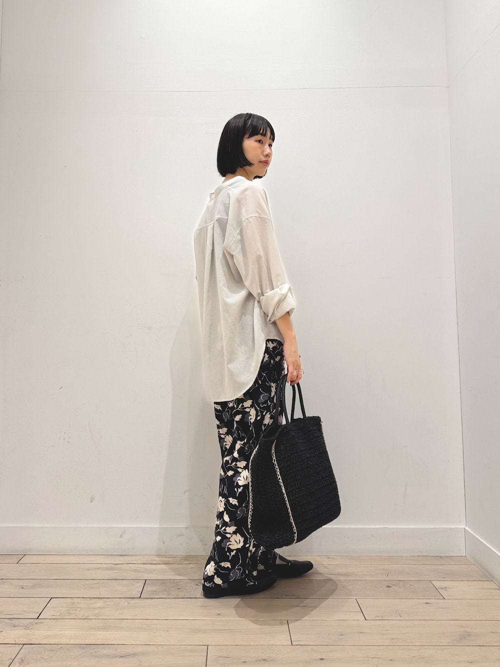 パンツはモノトーン調でシックなフラワーパンツです。ワイドすぎないシルエットなので、トップスをあまり悩まないのが嬉しいポイント‼︎