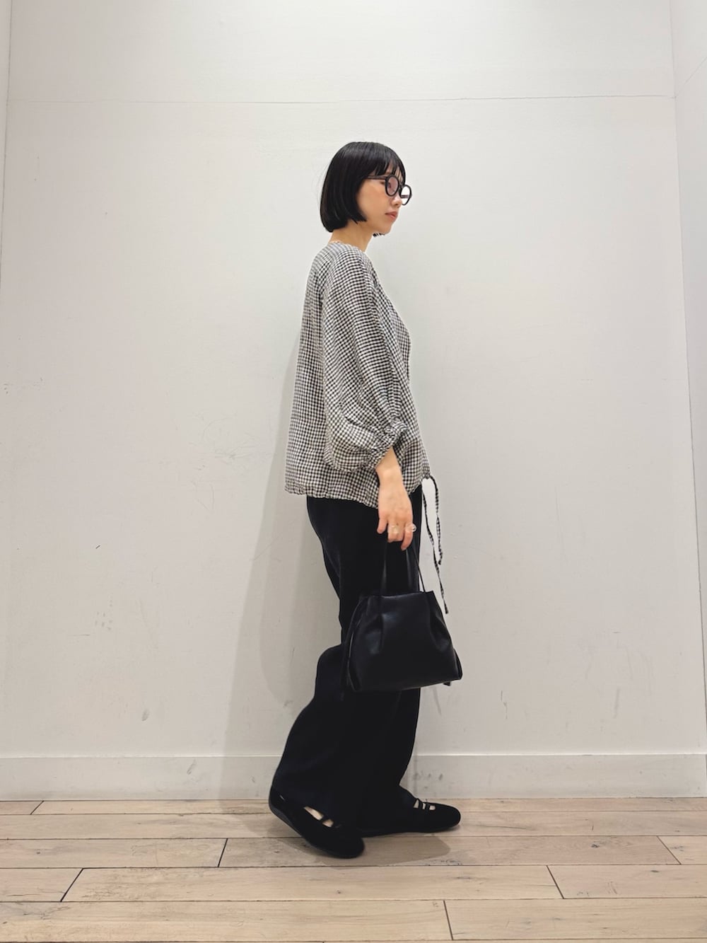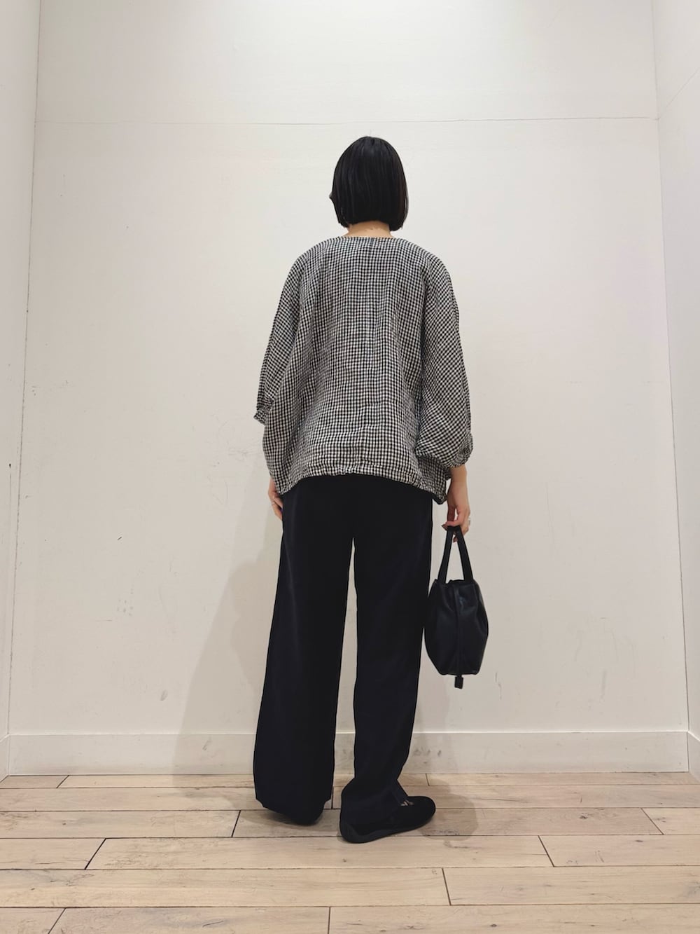 リネンドロストブラウスを前開けで羽織として使用しました。