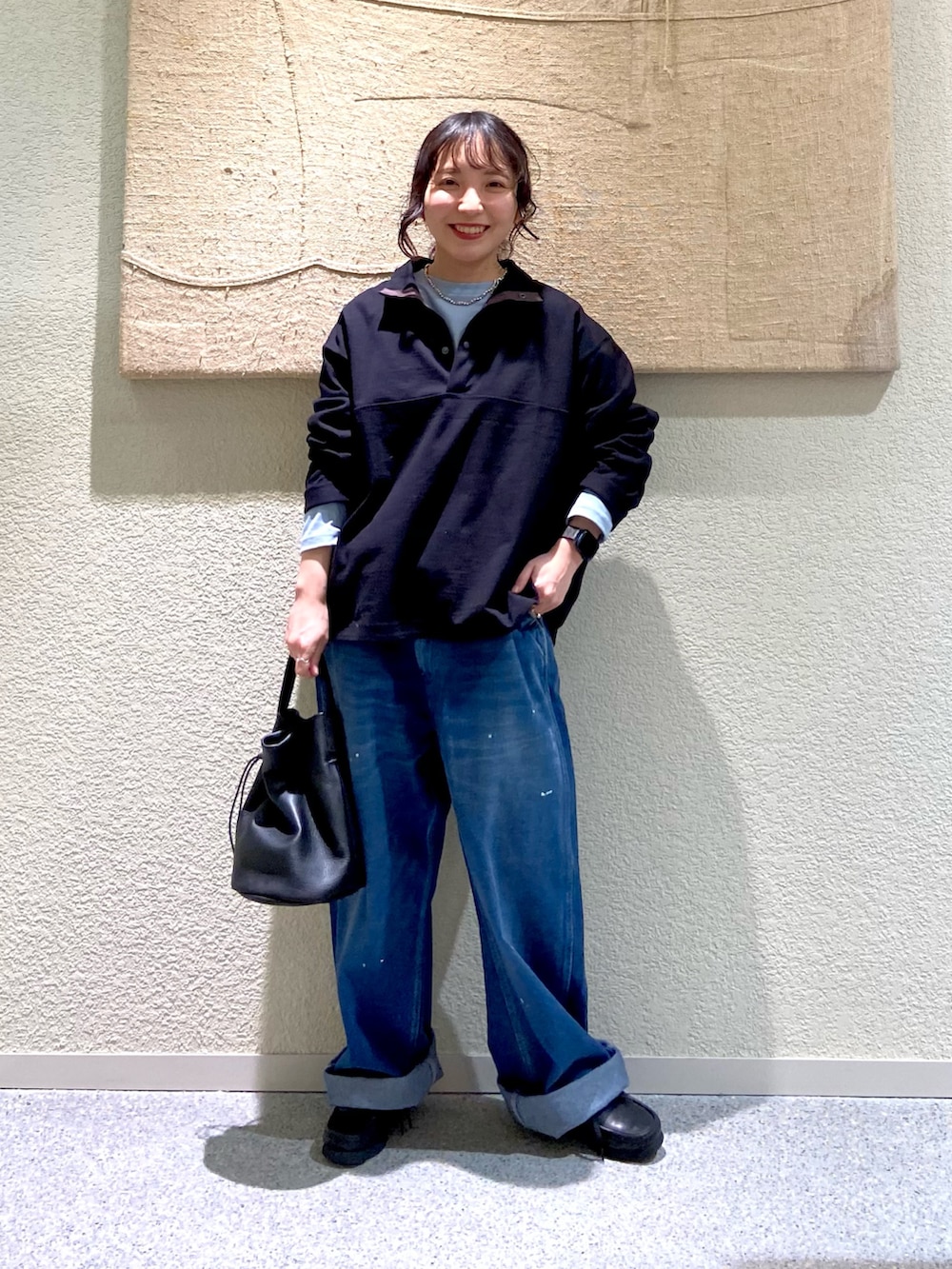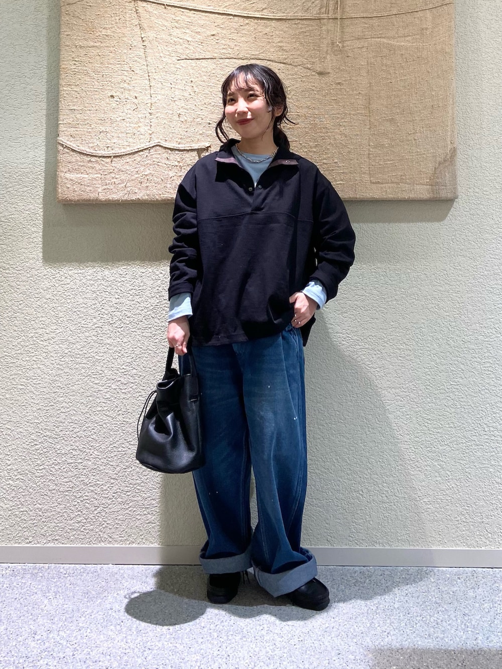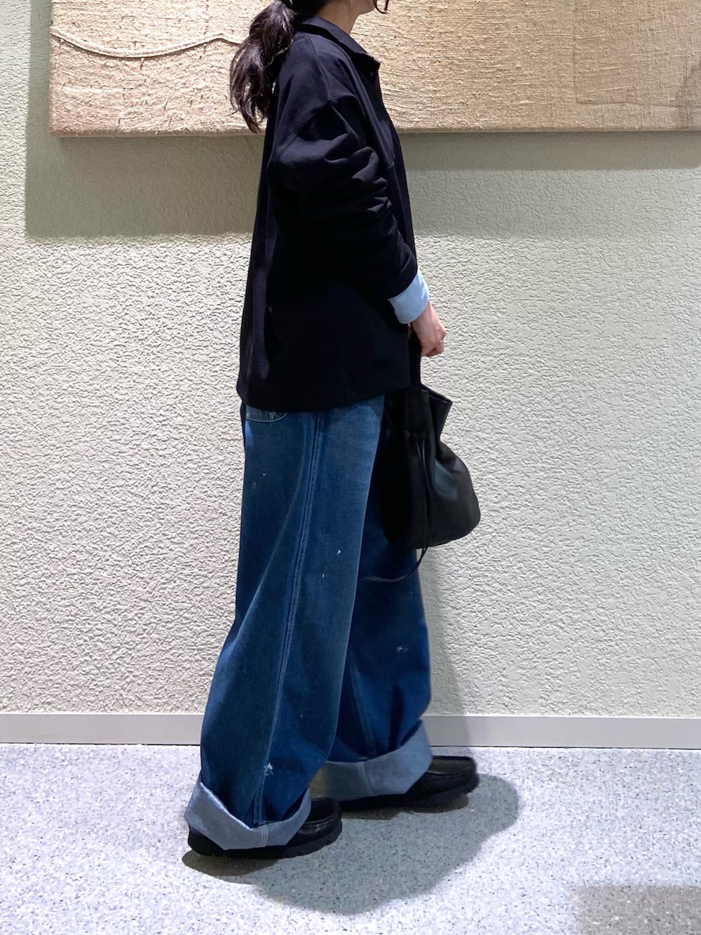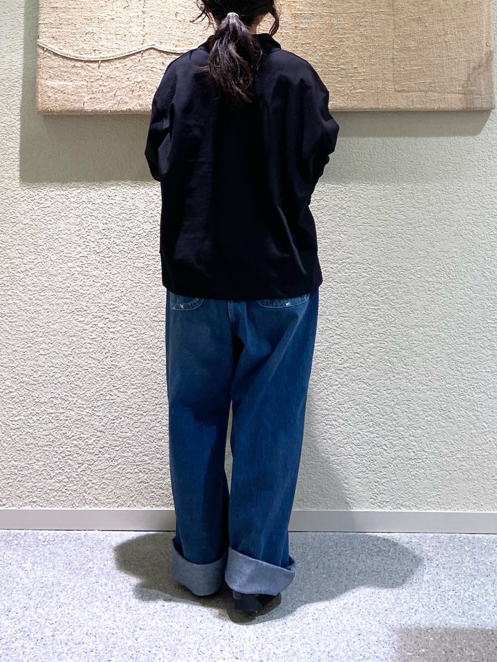 145cmで、裾を2回ロールアップして