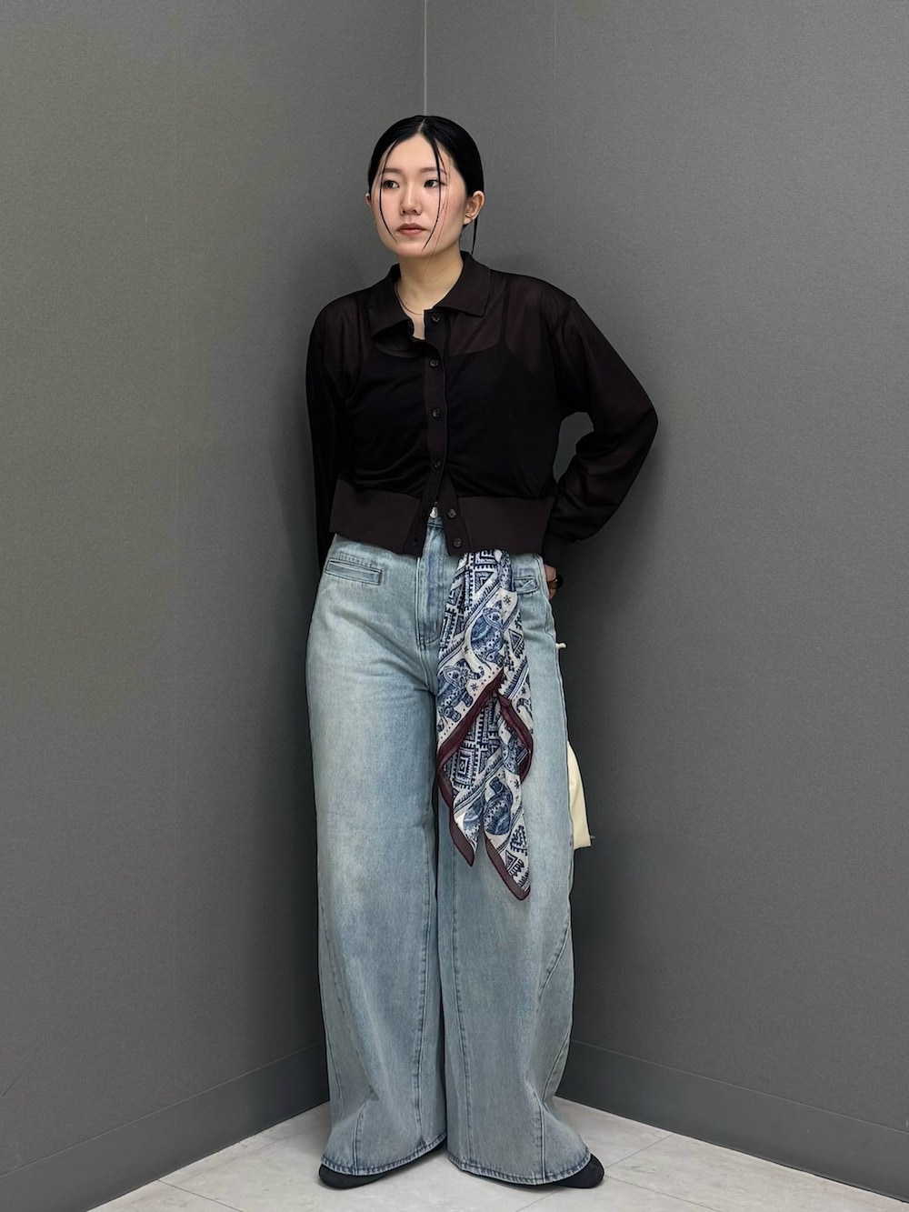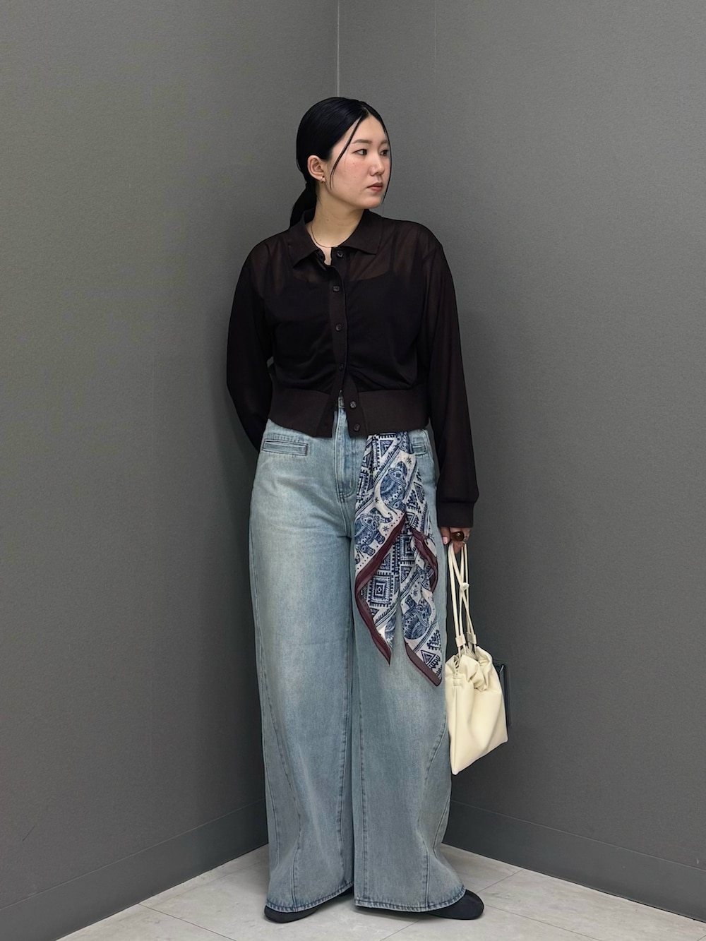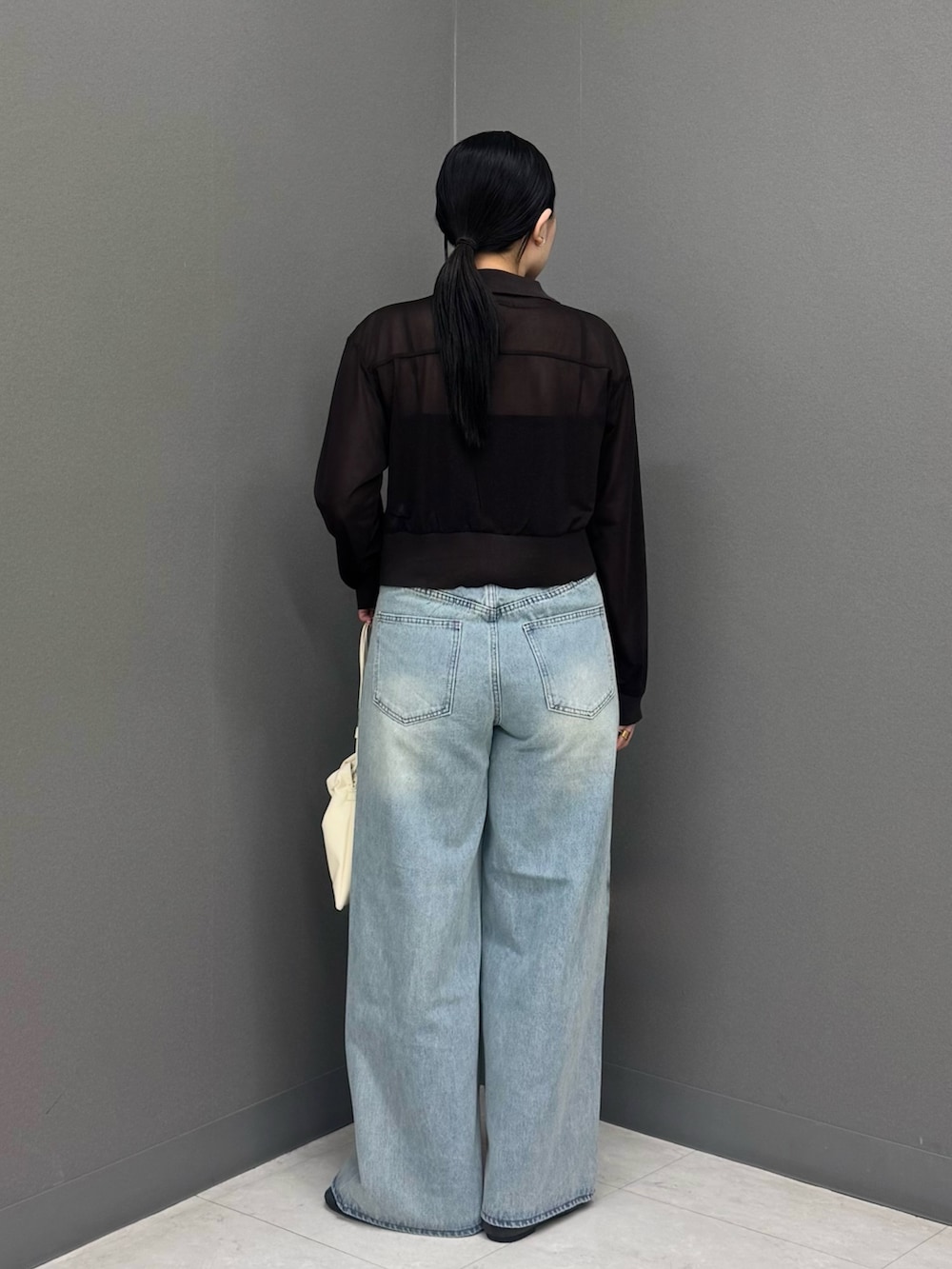 身体のラインを拾い過ぎないサイジングと程よい透け感は上品な印象に