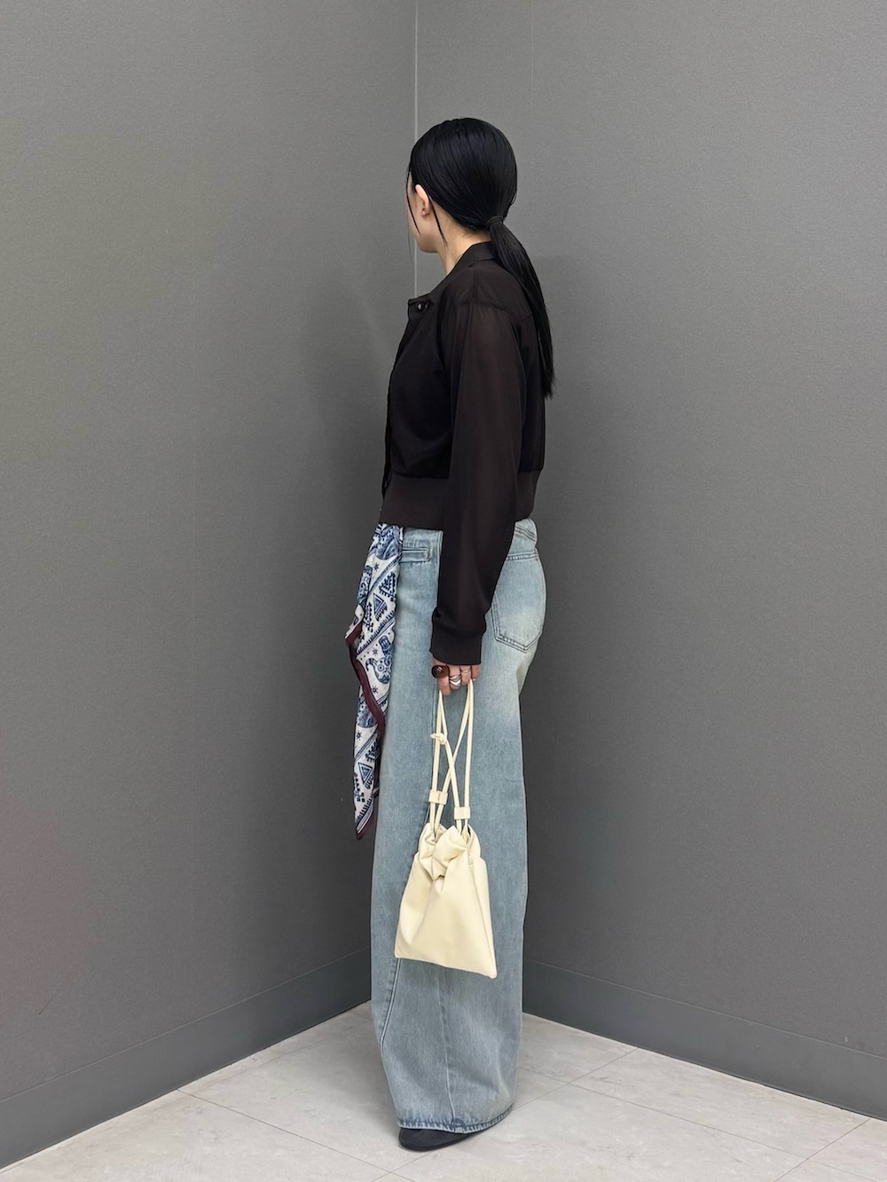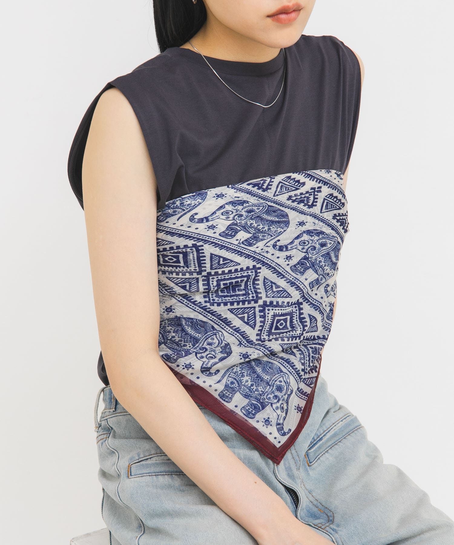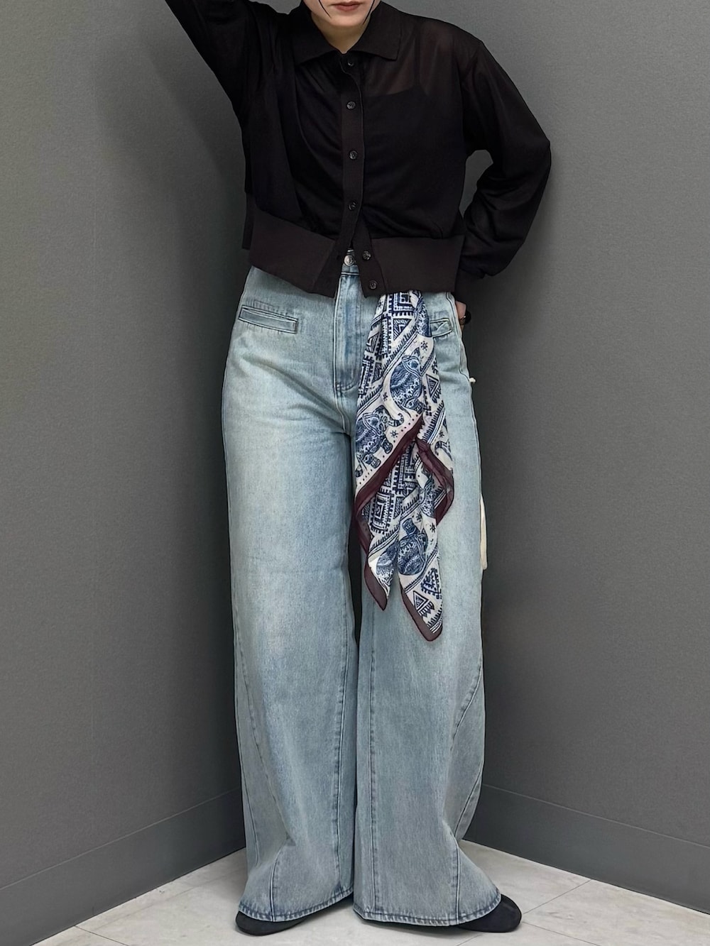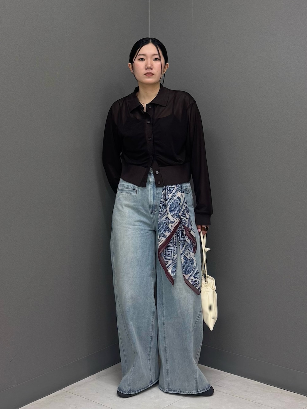 身体のラインを拾い過ぎないサイジングと程よい透け感は上品な印象に